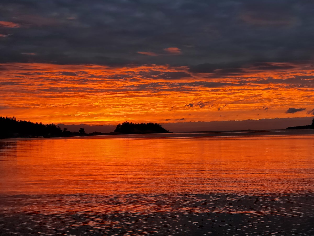 Experience luxury while in a rustic gulf island ocean front setting. Prov. reg #H905175603 Find absolute tranquility & calm in your finely hand crafted suite. Sumptuous king bed, spa-like bathroom, your very own private infrared sauna w/ an ocean view. Unplug, unwind, and recharge. High end kitchenette finishings and comfy sofa for enjoying your evenings. Use our beach stairs and stroll the gorgeous rocky beach or walk down the quiet country road. Enjoy ocean views from every part of your space!