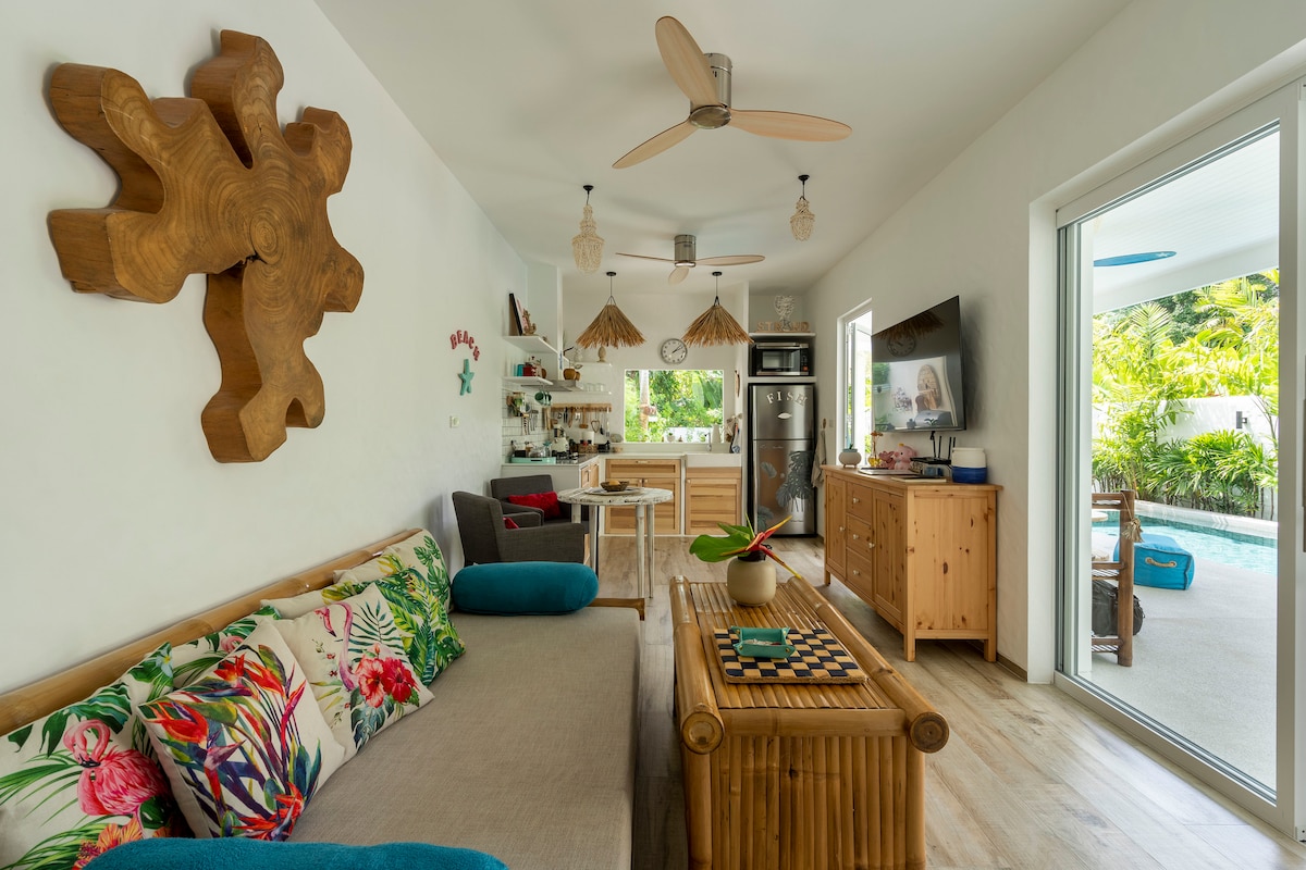 Unsere kleine ecofriendly Poolvilla befindet sich in einem ruhigen Tal, direkt am Phuket Country Club, einem der schönsten Golfplätze Phukets. Die 2021 erbaute Villa verfügt über einen gepflegten Salzwasserpool, einen großen überdachten Außenbereich samt Barbeque und separater Sala, einem separatem Schlafzimmer mit angrenzendem Badezimmer und überdachter Außendusche, einer kleinen Küche sowie über ein großes Bamboosofa welches zum relaxen einlädt... Die Villa ist ideal für Singles oder Paare.