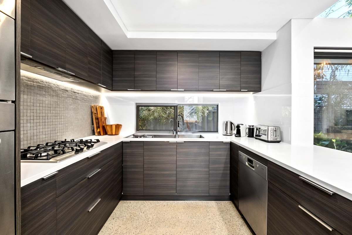Atpūtieties ar komfortu un stilu šajā nevainojamajā pludmales mājoklī. Ieelpojiet okeāna gaisu, izbaudiet dārza terasi un grilu vai izejiet pa ārdurvīm un izbaudiet ikonisko City Beach, vietējās kafejnīcas un restorānus, parkus un pastaigu pa pludmali. Viegls 10-15 minūšu brauciens ar CBD. Mums ļoti patīk satikt un uzņemt viesus mūsu jaunajā pludmales mājā. Kā godalgotus arhitektūras un interjera dizainerus, kas strādā viesmīlības nozarē, mēs izveidojām privāto dzīvokli, lai piedāvātu relaksējošu atpūtu ar visu mājokļa labestību un ērtībām. Ikdienas kūrorta stila naktsmītne ir pilnībā izolēta un labi iekārtota, lieliski piemērota darījumu braucieniem, brīvdienu ceļotājiem un ģimenēm, lai atpūstos un izbaudītu brīnišķīgo atrašanās vietu pie pludmales. Mūsdienu piekrastes stila interjers un naktsmītnes ietver: Galvenā guļamistaba ar Queen izmēra gultu, naktsgaldiņiem, konsoli, neregulāru krēslu un lielu aprīkotu drēbju skapi. Īpaši liela guļamistaba ar divām vienguļamām gultām, naktsgaldiņu, krājumiem un lielu garderobi ar rotaļlietu glabātuvi un vietu, kur bērni var rotaļāties. Stilīga, mūsdienīga vannasistaba ar tualeti, glabātuvi un dušu. Plašs un gaišs atvērtā plānojuma plānojums ar luksusa apdari Pilnībā aprīkota gardēžu dizaineru virtuve ar Eiropas tehniku Ēdamistabas galds/zona četriem Negabarīta atpūtas zona ar lielu TV/DVD NETFLIX un WiFi Vietējā mākslinieka Stīvena Drapera oriģināls mākslas darbs. Studiju stūrītis un rakstāmgalds ar plauktiem un mobilo pjedestālu - ja jums patiešām jāstrādā ! Nošķirta, klusa tropu dārza terase ar alfresko ēdamistabu un bbq aprīkojumu ļauj baudīt iespaidīgus saulrietus un klausīties sērfošanas skaņās ar klusu vīna glāzi. Dzīve ir laba :) Mūsu viesiem ir savas privātās durvis, lai nāktu un dotos, kā vien vēlas, ar privātu piekļuvi visām naktsmītnēm. Mūsu baseina un baseina mājas klāja izmantošana pēc vienošanās. Mēs jūs personīgi uzņemsim un sniegsim ieteikumus par vietējām ēstuvēm, bāriem, izklaides, sporta un iepirkšanās iespējām. Kā arī apskates vietas, ko apmeklēt + ko darīt ar bērniem! - Mēs varam nodrošināt velosipēdus, boogie dēļus, brālības, pludmales dvieļus, spaini un lāpstas. Mēs esam tikai viena zvana attālumā un parasti esam gatavi palīdzēt jums izbaudīt uzturēšanos. Man patīk dienvidu pilsētas pludmales atmosfēra, draudzīgā pludmales atmosfēra! Divu minūšu gājiens, un starp pirkstiem būs smiltis. Šeit ir daudz ēstuvju, no kurām izvēlēties, tuvumā esošs diennakts gardēžu lielveikals un ērta piekļuve CBD, Freo un Kings Park. Autobusa pietura atrodas 100 m attālumā no mūsu mājas (82. AUTOBUSS) 30 minūšu laikā. Autobuss apstājas Subiaco, kur jūs varat savienot ar vilcienu, lai dotos uz pilsētu, Elizabetes piestātni, Klaremontu, Cotteslo un Fremantle zvejas ostu vai iespaidīgo jauno Optus kāju stadionu un Crown Kazino un kūrorts. Autostāvvieta ārpus ielas ir pieejama, un mēs iesakām apsvērt nomas automašīnu, ja jūsu uzturēšanās ilgums ir ilgāks par dažām dienām. Ja tas ir bez maksas, mēs labprāt jūs nogādāsim ceļā, vai arī jūs varat izmantot Uber. Vienlīmeņa atvērtā plānojuma dzīvojamās telpas ar diviem pakāpieniem līdz veļas mazgātavai un vannasistabai. Mēs izmantojam bio ķīmisko ūdens attīrīšanas sistēmu, t.i., ik pēc 3-4 reizēm, kad izmantojat vannasistabu, sūknis darbosies 3-4 sekundes ar nelielu atlikušo troksni.