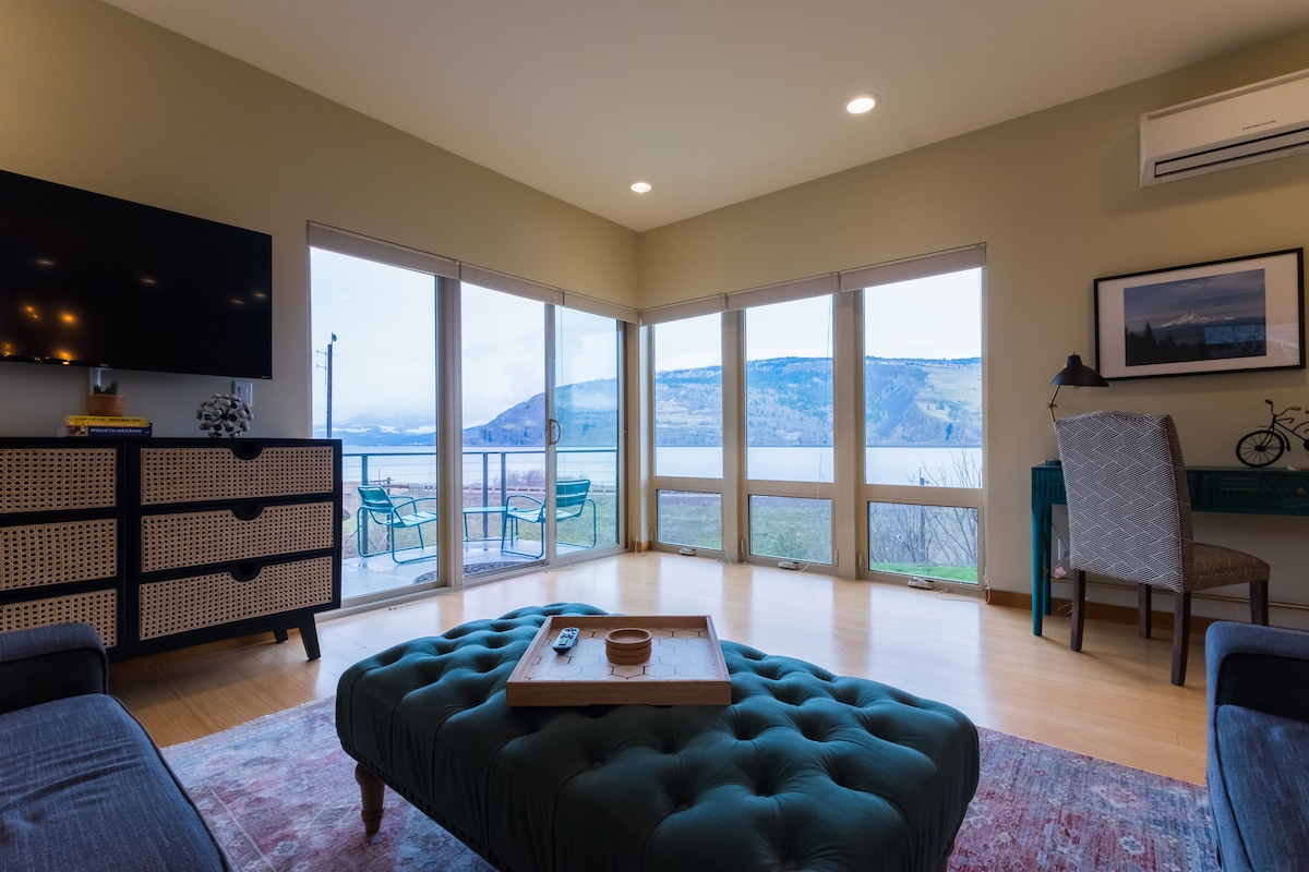 Skats uz upi, iespaidīgi saulrieti! Augšējā vienība ar velvētiem griestiem un papildu logiem! Skaista, moderna dzīve. Braukšana ar velosipēdu, ūdenssporta veidi vai vienkārši atpūta, vērojot arvien mainīgo Kolumbijas upes aizu. Hudrivera atrodas tikai dažu minūšu attālumā, lai baudītu brīnišķīgas maltītes, alu, sidru un stipro alkoholisko dzērienu degustāciju, kalnu riteņbraukšanu un vīna degustāciju. Vietējais restorāns un tirgus pastaigas attālumā. Mosier Plateau taka ar ūdenskritumu, Twin Tunnel taka. Lielisks Wi-Fi. Iekļauti pieliekamie un brokastu priekšmeti!