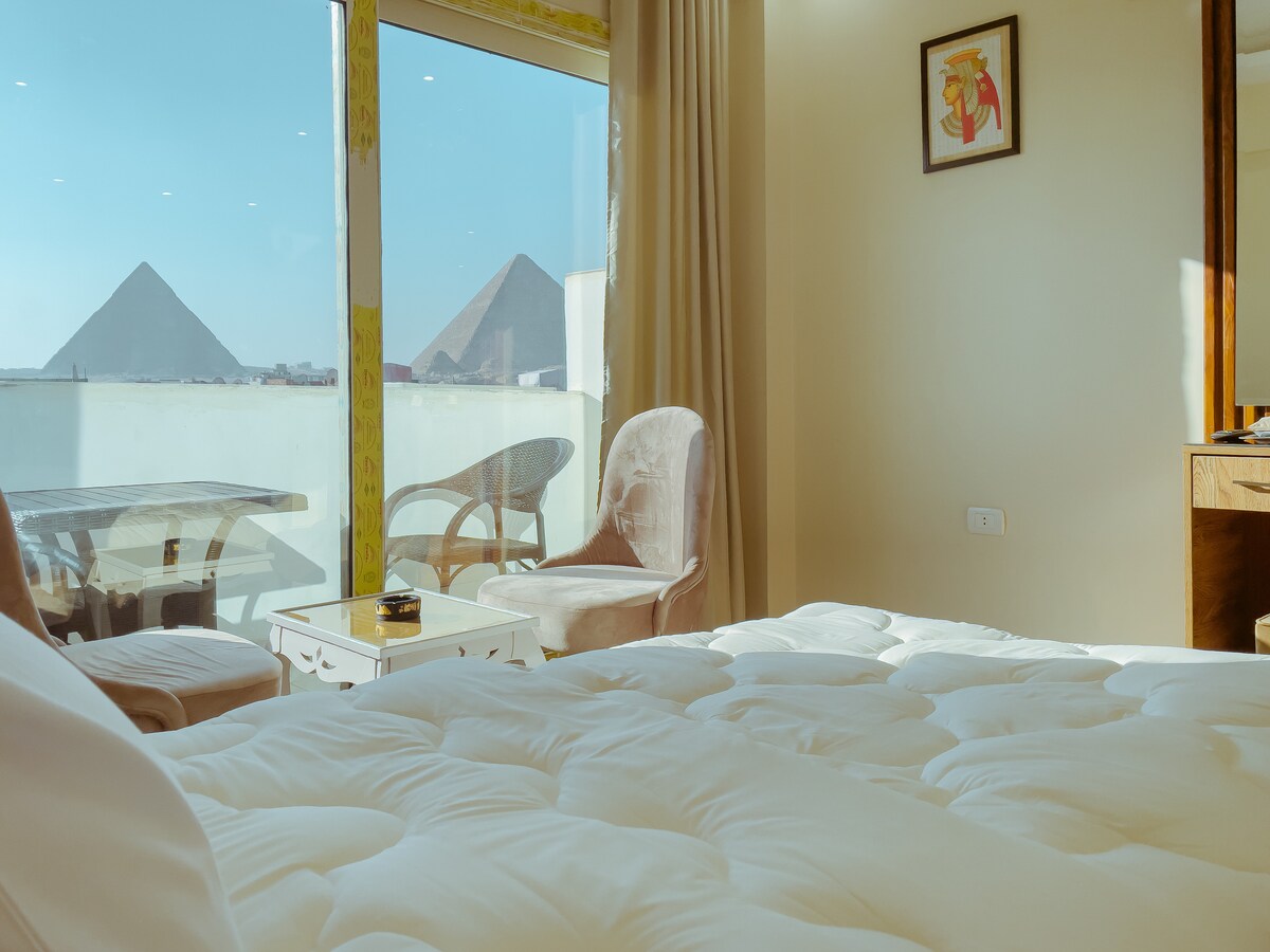 Mājīga istaba ar satriecošu skatu uz piramīdām