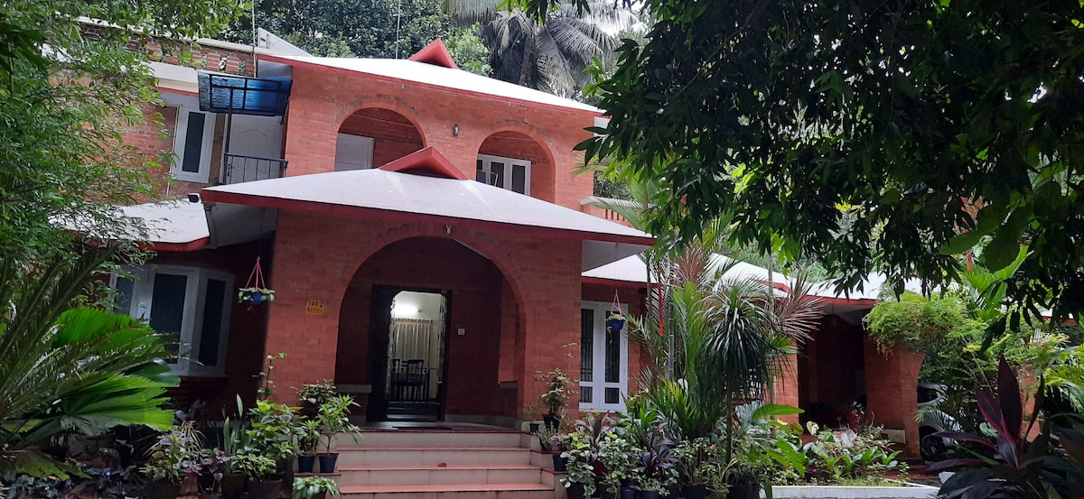 The house is located in a totally green belt amidst coconut trees and orchids in bloom. The location is home to many of the exotic birds of Kerala. It is also located within 18 km from airport and 7 km from the Trivandrum central station. The Air Bnb rooms are located on the ground floor. The existing house is an active residential house with a fully equipped kitchen and pantry. However, Maria can arrange for meals based on prior notice. The charges for food will be advised based on menu.