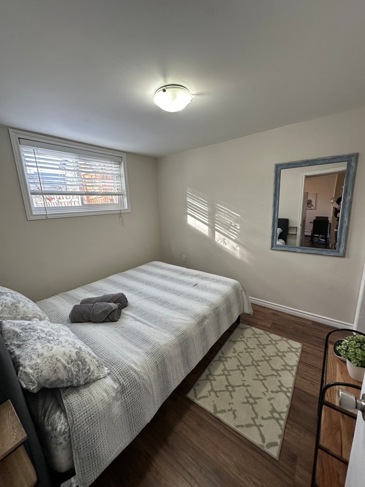 Izbaudiet uzturēšanos nesen izremontētā pagraba dzīvoklī ar pirti, atsevišķu ieeju un lielu viesistabu. Iekļauta divguļamā gulta, izvelkams dīvāns, liela duša, kamīns un veļas mazgājamās mašīnas. Atrodas 5 minūšu brauciena attālumā no lidostas klusā apaļajā ielā. Dažu minūšu attālumā no daudziem ātrās ēdināšanas restorāniem, pārtikas veikaliem un visām citām papildērtībām. Pieejama autostāvvieta uz ielas.