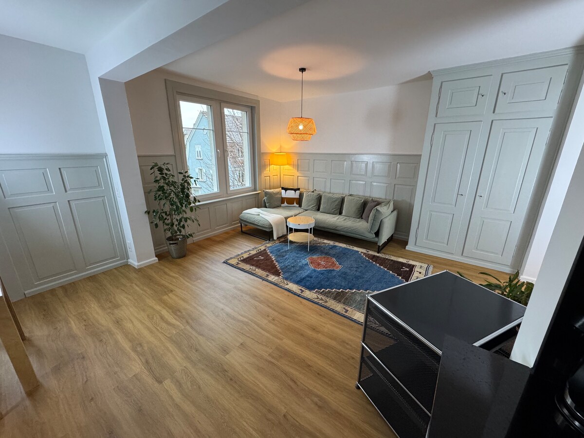 Laipni lūdzam manā pilsētas dzīvoklī - miera oāzē Vintertūras pilsētas centrā. Dzīvoklis var uzņemt līdz 6 cilvēkiem, un tas atrodas ideālā vietā, lai iepazītu pilsētu un tās apkārtni/ 5 minūšu gājiena attālumā no Centrālās stacijas un Kantonas slimnīcas Winterthur. Izbaudiet relaksējošas naktis mājīgajā guļamistabā un relaksējošas dienas gaišajā viesistabā. Tuvumā atrodas restorāni, veikali un sabiedriskais transports. Ar nepacietību gaidīšu jūs ciemos!