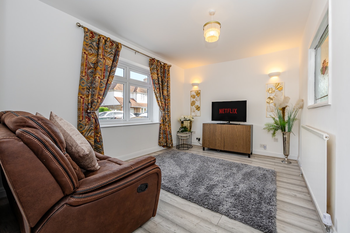 Ockendon House – a stylish, modern 3-bed home in South Ockendon with private driveway parking. Perfect for contractors, relocations and longer stays, sleeping up to 7 guests. Enjoy a spacious lounge, fully equipped kitchen, smart TV with Chromecast, fast WiFi, large garden, self check-in, washer/dryer and long-stay discounts, all in a quiet location close to local amenities.