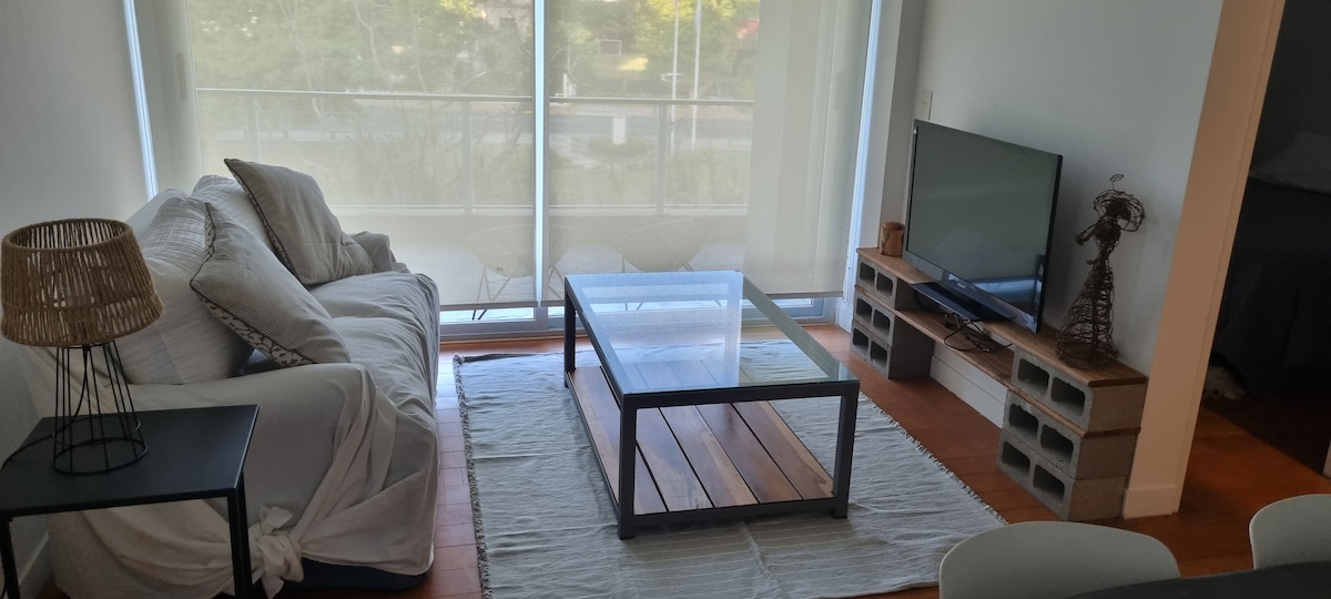 Desconecta de tus preocupaciones en este espacio tan amplio y sereno. Hermoso apartamento de 2 dormitorios , 2 baños, en la mejor ubicación de zona norte, con vista al rio. Un cuarto con cama matrimonial extra grande y otro con 2 camas de una plaza. Se encuentra a pocas cuadras del vial costero, ideal para salir a caminar o andar en bicicleta. Frente a una zona de restaurantes de primer nivel y de una estación policial. El complejo cuenta con piscina de 20 metros, seguridad 24hs y gimnasio.