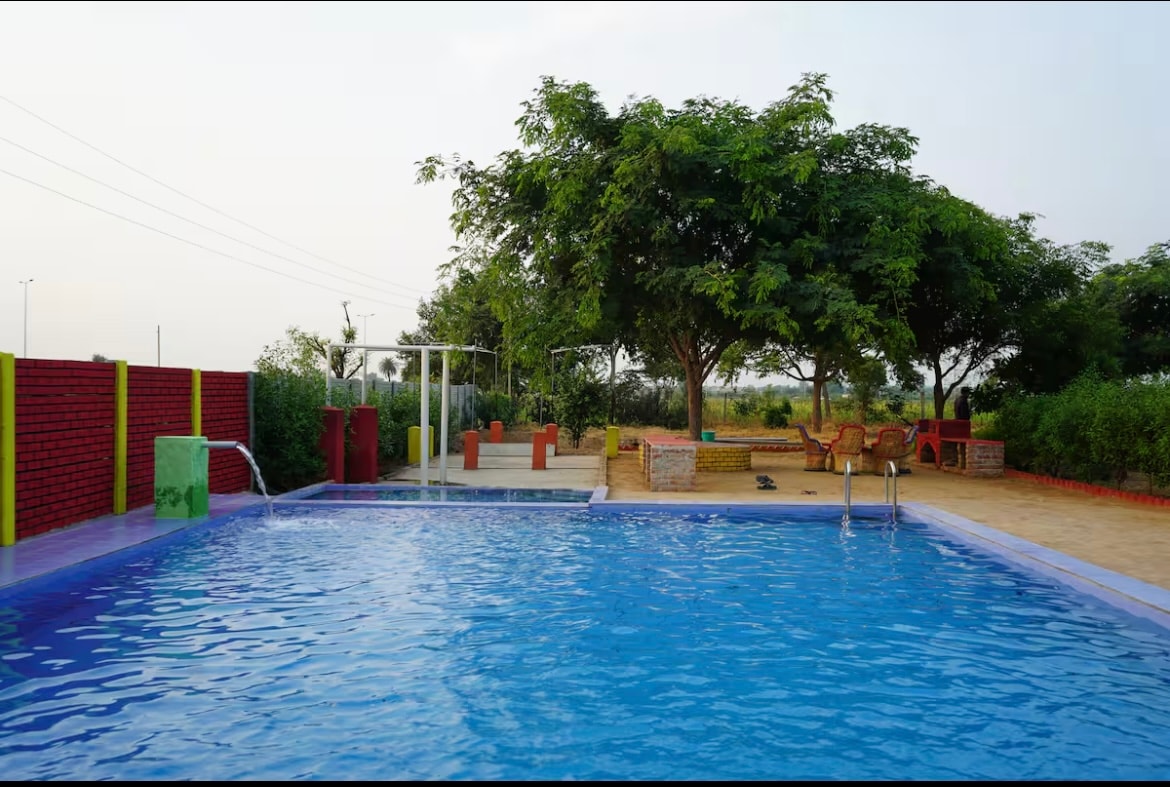 Rupani Dhani by Belmore – Village Farmstay • Raw village-themed retreat just 55–65 mins from Gurugram • Spacious open lawns surrounded by farms • Desi-style cold-water pool • Anghitti-cooked meals with authentic homemade flavours • Basic yet clean rooms with essential amenities • Perfect for families, groups, team outings & small events • Ideal for digital detox, fresh air & peaceful rural living A calm, earthy escape offering true village vibes away from city noise. Security Deposit Required.