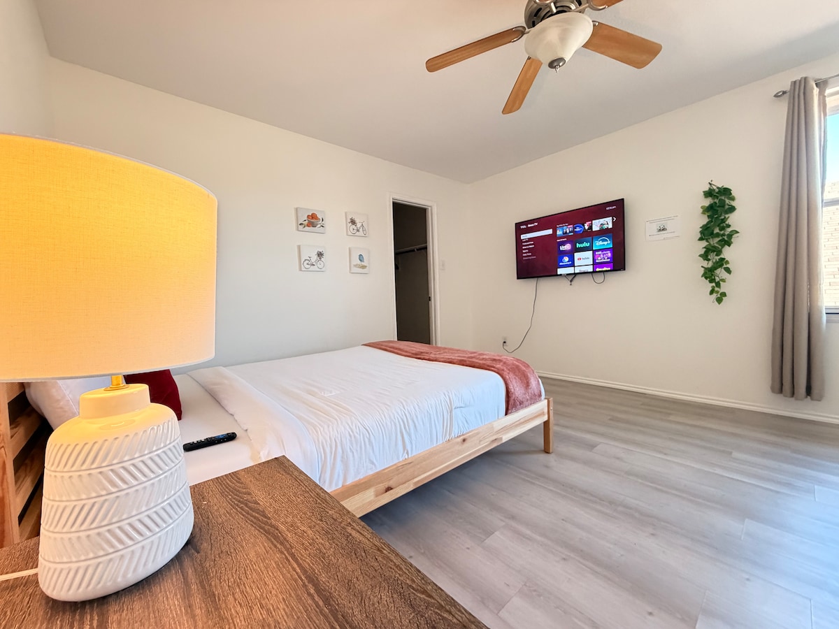 Atklājiet mūsu mājīgo atpūtu lauku stilā klusā lauku pilsētā, kas atrodas tikai 30 minūšu attālumā no Teksomas ezera. Izbaudiet īpaši atlasītu rietumu dekoru, šķiedras internetu, ērtu dzīvojamo zonu, pieticīgu virtuvi un guļamistabu ar divguļamo gultu ar izteiksmīgu baltu gultasveļu. Dzīvojamā istaba ir aprīkota ar pilna izmēra izvelkamu dīvāngultu. Izbaudiet vienkāršos lauku dzīves priekus mūsu burvīgajā apkaimē. Ļaujieties mūsu Teksasas patvēruma lauku šarmam - rezervējiet savu neaizmirstamo uzturēšanos jau šodien!