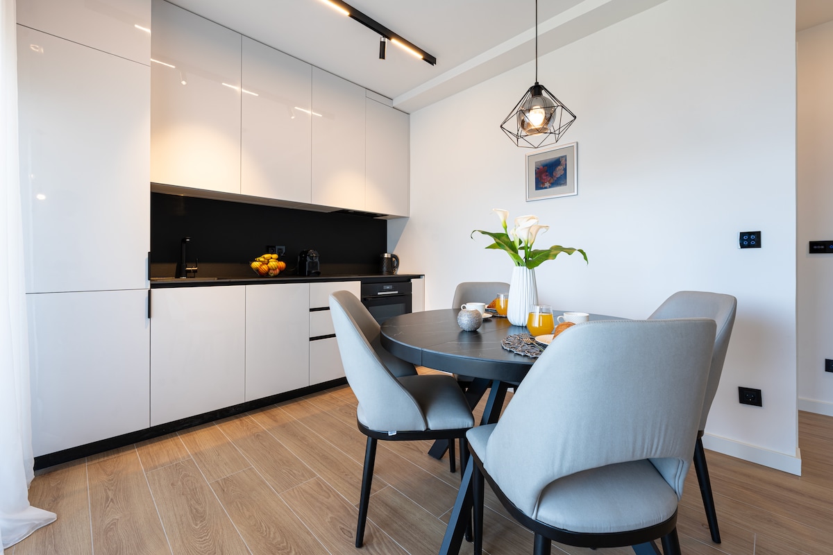 Moderns 2 guļamistabu un 2 pilnībā aprīkotu vannasistabu dzīvoklis Tivatā. Ar skatu uz jūru, autostāvvietu garāžā un piekļuvi kopīgam peldbaseinam. Stilīgais interjers piedāvā atvērta plānojuma dzīvojamo zonu, pilnībā aprīkotu virtuvi un privātu balkonu ainavas baudīšanai. Atrodas pastaigas attālumā no Porto Melnkalnes jahtu piestātnes, restorāniem un veikaliem - ideāli piemērots pāriem, ģimenēm vai draugiem, kas meklē ērtu un ērtu atpūtu piekrastē. Lūdzu, ņemiet vērā: baseins ir atvērts aptuveni no jūnija līdz septembrim (ieskaitot).