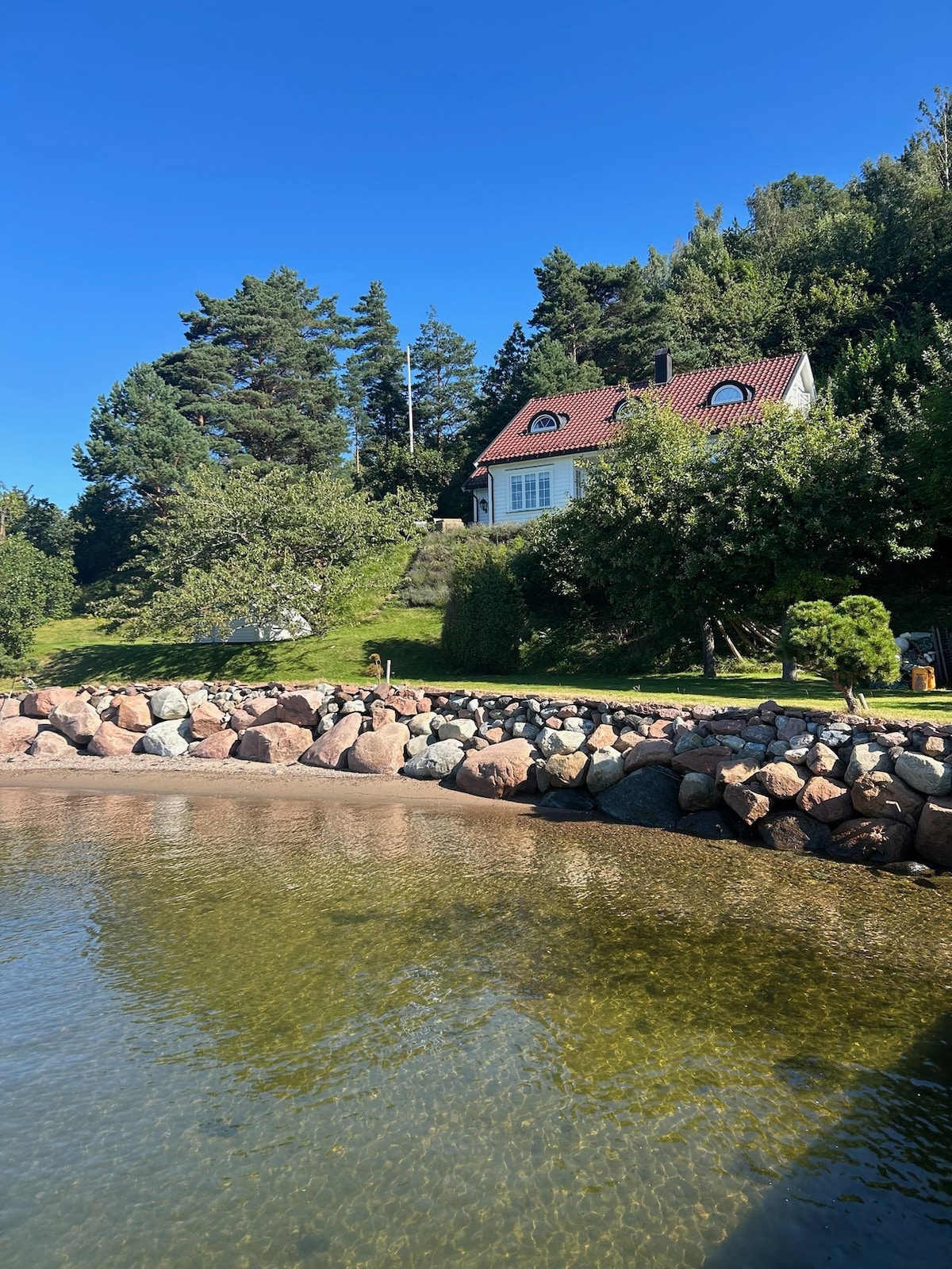 Sommerhus på stranden, stor hage og egen brygge