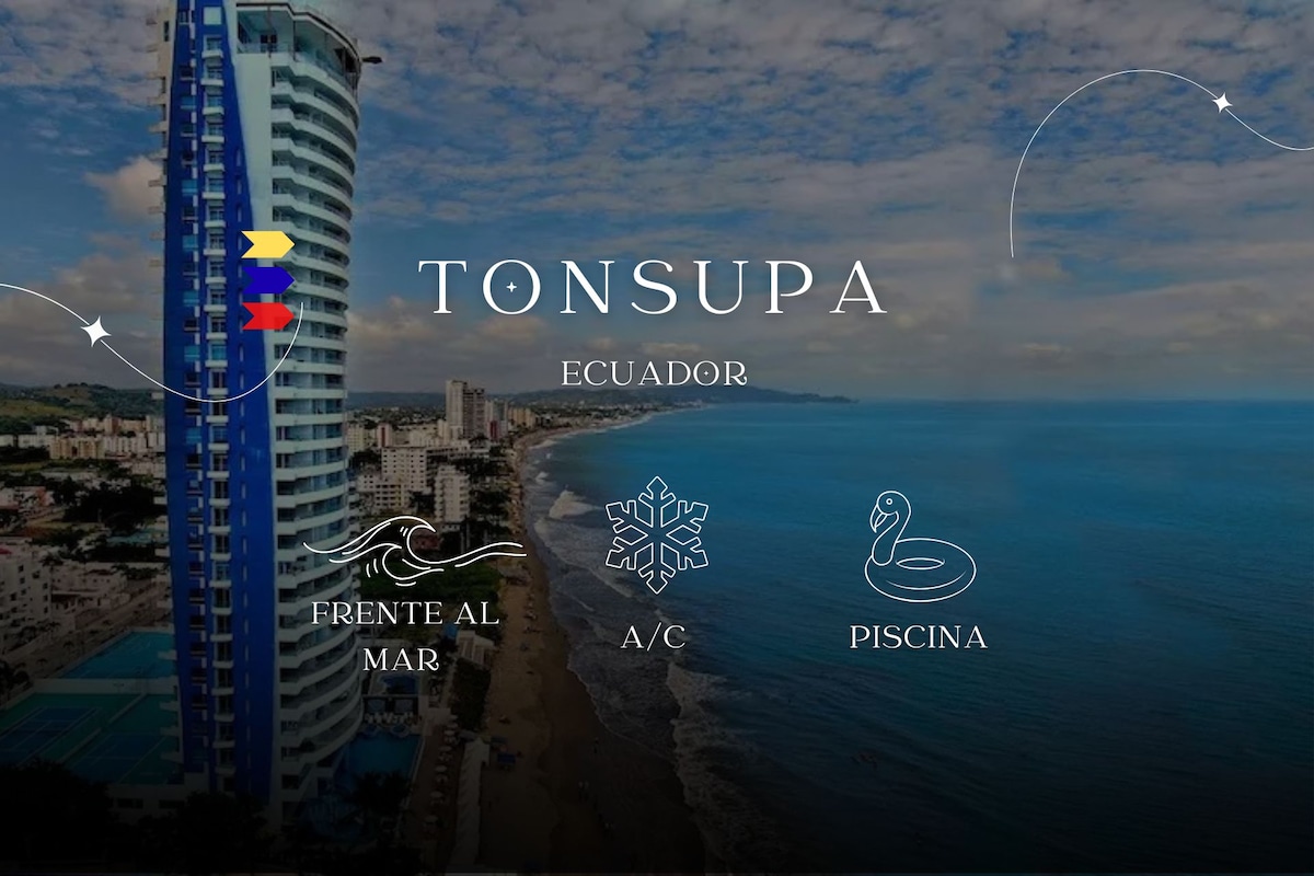 ✅ ¡Super Anfitrión Verificado! Tu estadía esta con los mejores🤝🏆 Vive la combinación perfecta de comodidad y lujo en familia o amigos👫 🏡 Apartamento ubicado en Tonsupa Ecuador 📍 Excelente ubicación Piso 12 🌟 El apartamento ofrece: 🛌3 dormitorios 💧2 baños completos con agua caliente ❄️ AC 🛁Jacuzzi 🌐WiFi & TV 🍳Cocina totalmente equipada 🚌Cerca de transporte público 🛁 Sauna 🏖️ Espectacular vista al mar 🏊 Piscina 🔥 Baño turco 🐶 Pet Friendly 🏋️ Gimnasio 🛡️Seguridad 24/7 horas