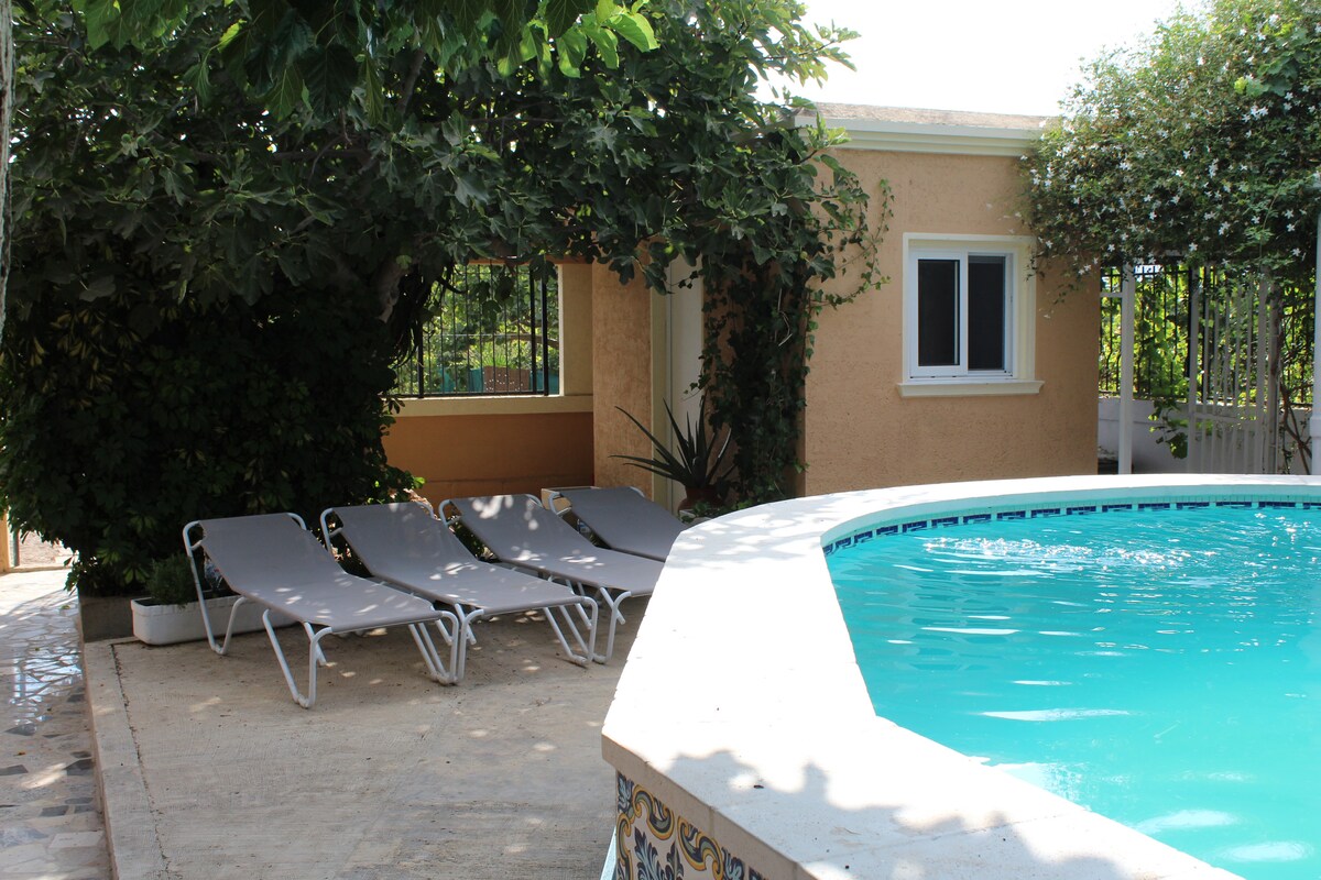 Mājīga augļu dārza māja ar baseinu un parku