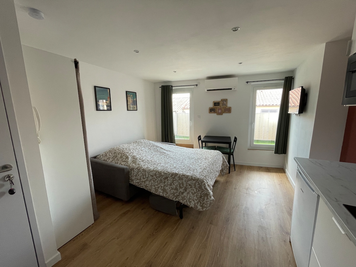 Studija pilnībā aprīkota un atjaunota 2020. gada jūnijā. Šī studija, kas atrodas Tulonas hipercentrā, uz dienvidiem vērsta studija ļauj baudīt skaistu spilgtumu 50 m attālumā no Tulonas ostas. Jūs varat nokļūt visur ar kājām vai ar sabiedrisko transportu. Naktsmītnē ir gaisa kondicionētājs, jums ir Wi-Fi un televizors, lai skatītos iecienītākās filmas un seriālus ar 140 cm 4K ekrānu. Tā atrodas 3. stāvā bez lifta.