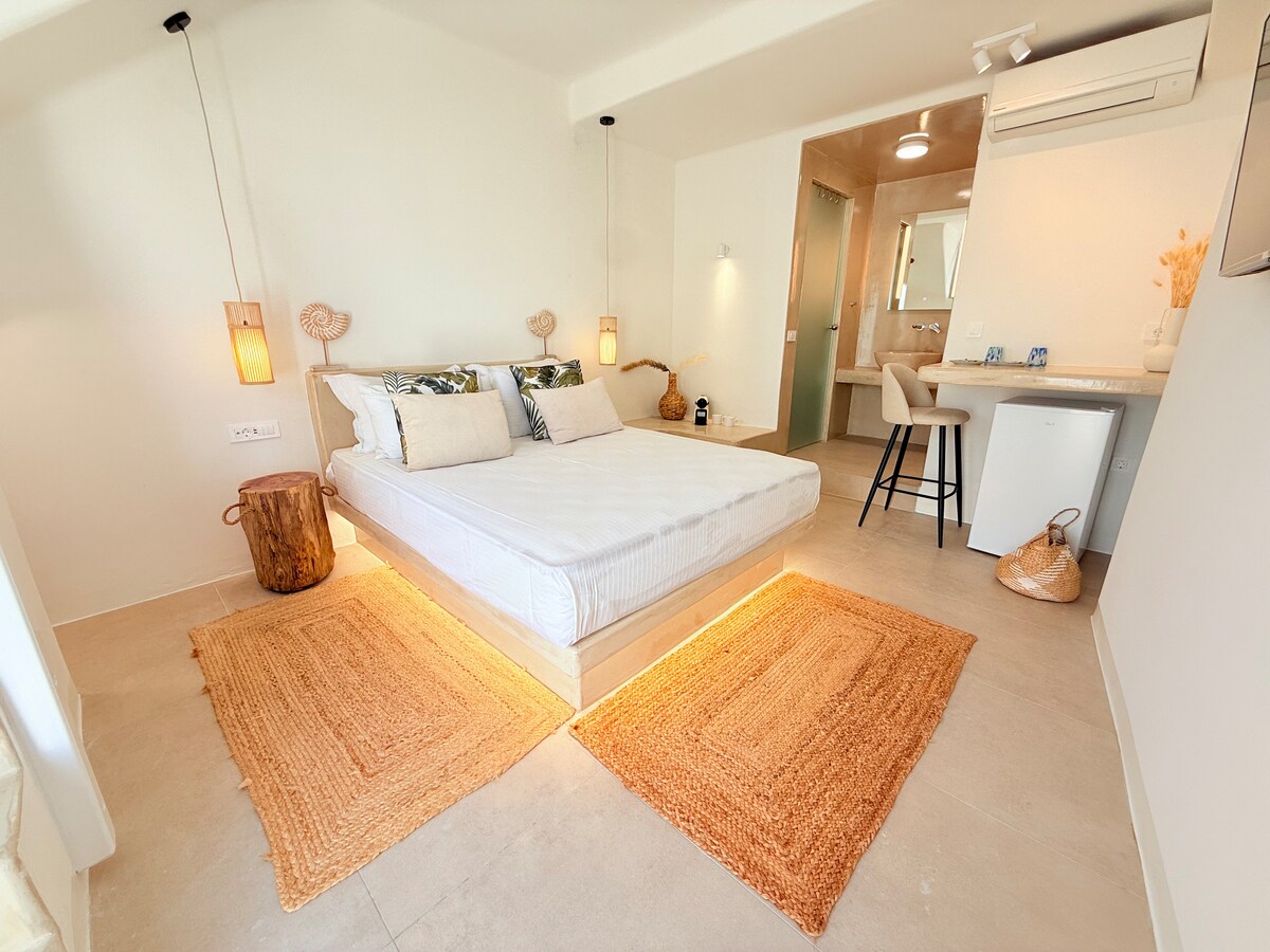 Istaba sastāv no divguļamās gultas , mini bāra, espresso kafijas automāta, viedā televizora, gaisa kondicioniera un privātas vannasistabas ar elektrisko dušu. Pie mājokļa atrodas privāts balkons, no kura paveras satriecošs skats uz Mikonosas pilsētu un un saulrieta skats katru nakti jūsu ceļojumā. Visiem viesiem bez maksas pieejams arī bezmaksas Wi-Fi. Numurs atrodas simts (100) metru attālumā no Mikonosas pilsētas centra pludmales Restorāni un bāri.