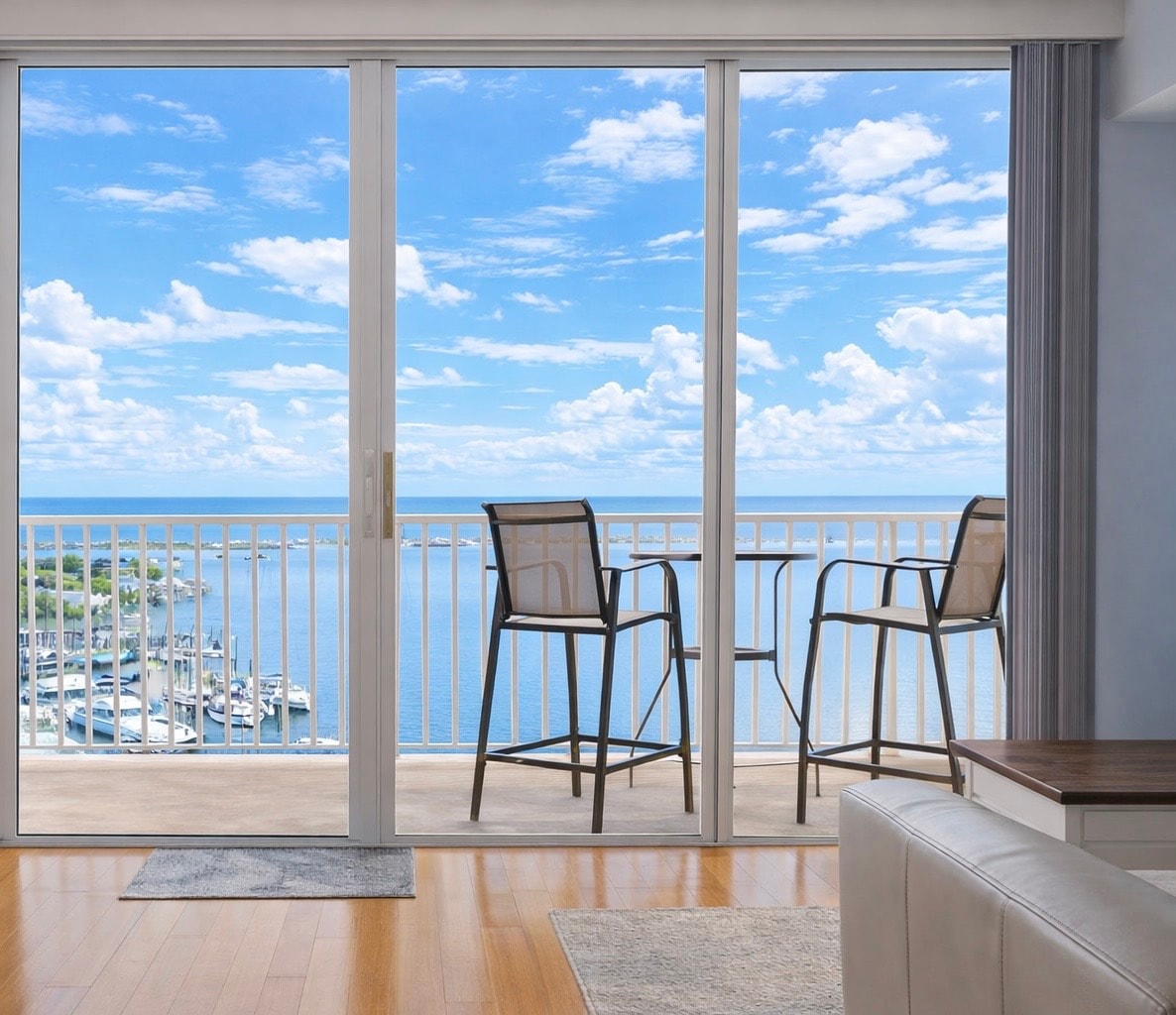 Lux Condo ar 2 balkoniem, skatu uz okeānu un jahtu piestātni