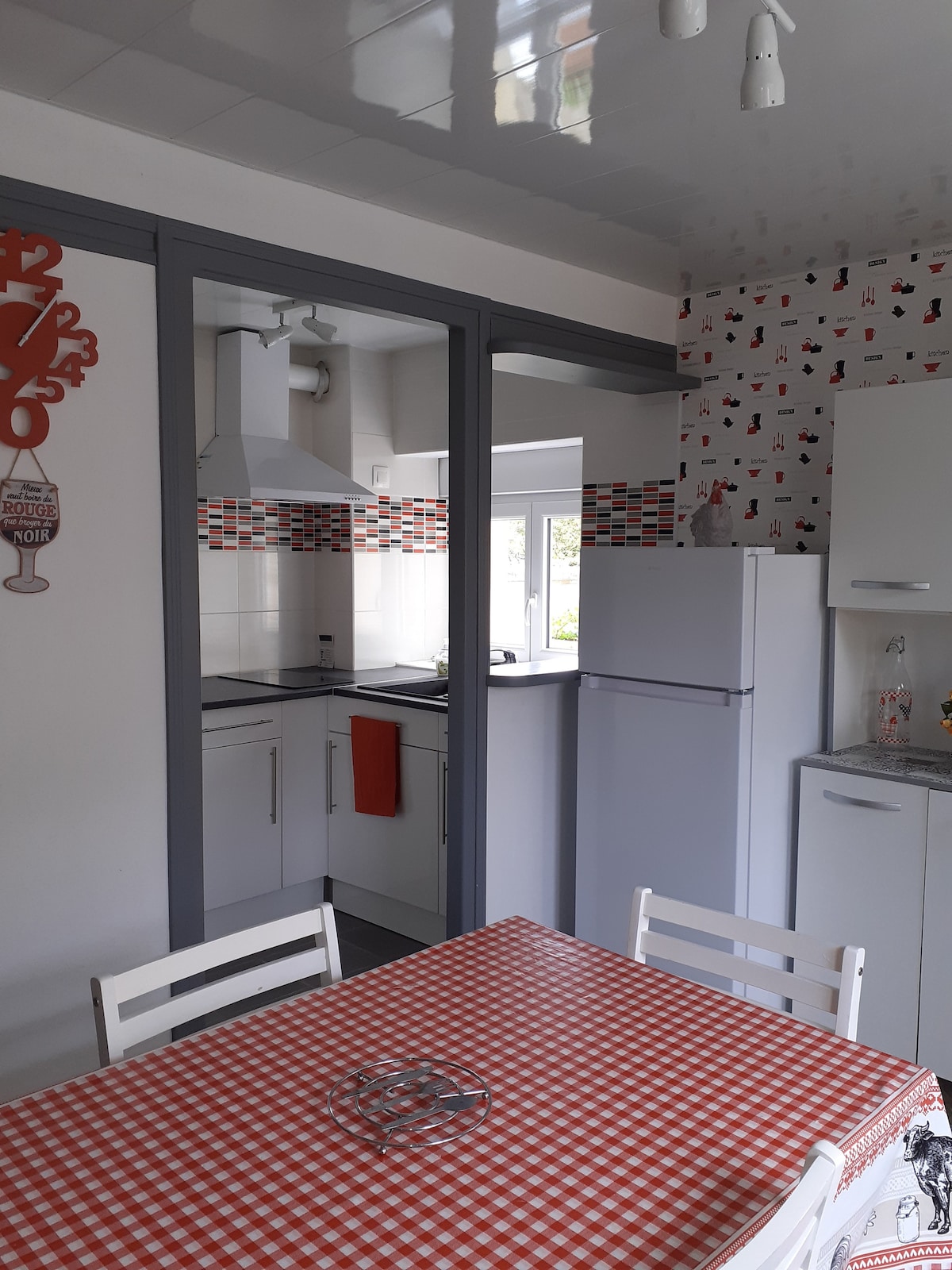 Māja 100 m2 platībā, kas atrodas klusā Montier-en-Der ielā. Pirmajā stāvā atradīsiet pilnībā aprīkotu virtuvi (SENSEO), kas ir atvērta dzīvojamajai istabai, tostarp dzīvojamajai istabai. Grīda sastāv no divām guļamistabām, vienas ar ģērbtuvi,gaisa kondicionētāju un televizoru katrai guļamistabai, mezonīnā ir pieejams arī clic-clac, pēc tam vannasistaba. Kas attiecas uz ārpusi,jūs varat baudīt jauku daļēji klātu terasi, kas aprīkota ar grilu, dārza mēbelēm un solāriju