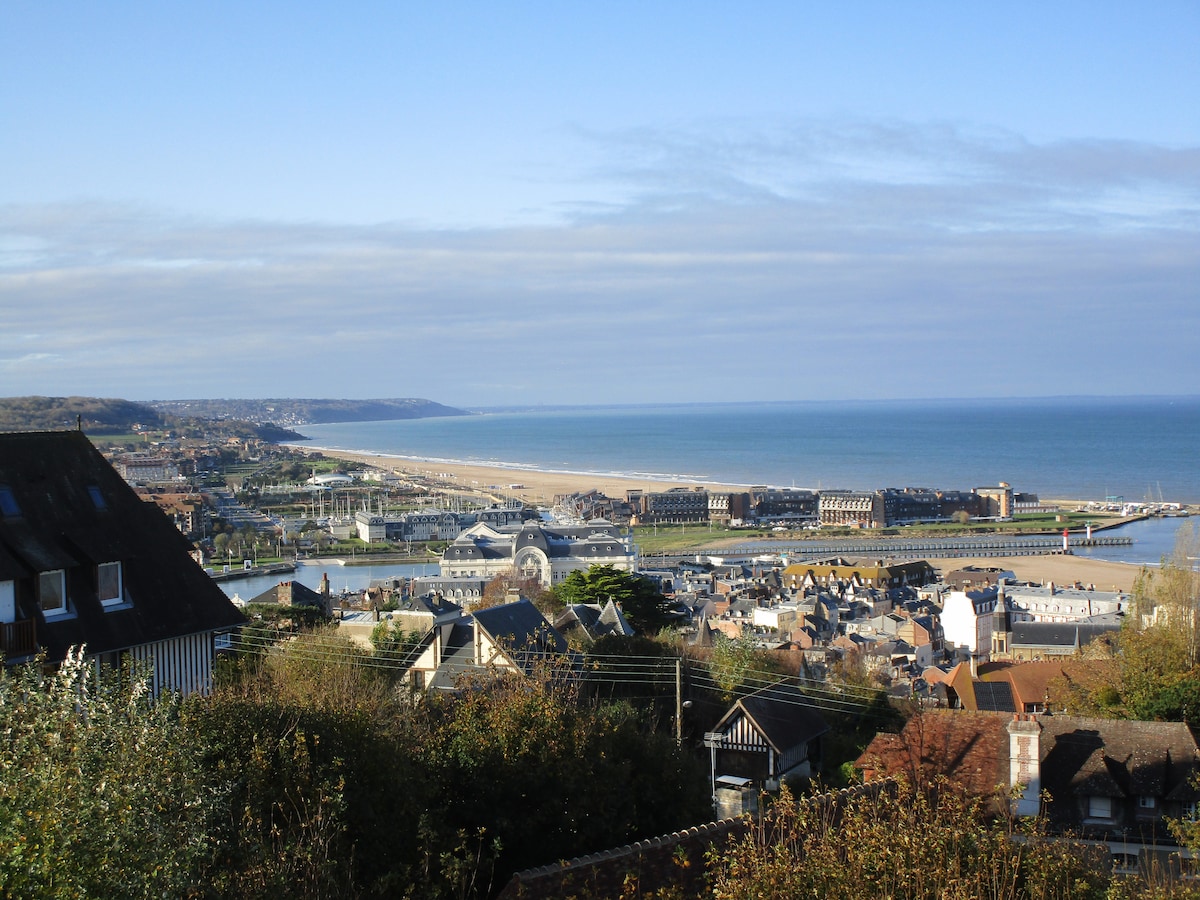Viens no labākajiem skatiem uz Trouville (180° līcī). Izmantojiet privāto terasi un dārzu, lai atpūstos un izbaudītu jūras gaisu. Atrodas rezidencē, kas atrodas virs pludmales, ar bezmaksas privātu autostāvvietu, ko izpētīt kājām (10 minūšu attālumā no pilsētas centra un 5 minūšu attālumā no pludmales). Pilnībā pārveidots, dzīvoklis ir klusa ligzda, kas ir ideāli piemērota uzlādei vai darbam attālināti (šķiedras Wi-Fi).