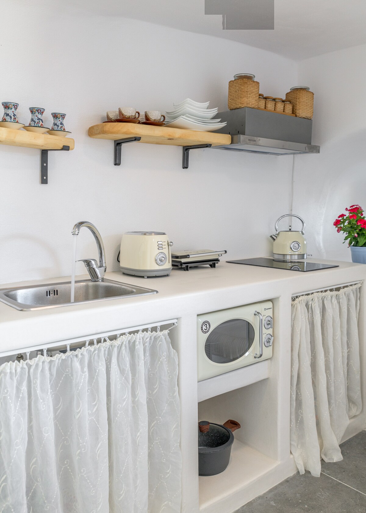 Atpūtieties Echoes Exclusive Suite numurā viesnīcā Echoes Milos, kas ir ideāli piemērots diviem viesiem, kuri vēlas baudīt komfortu un mieru. Ērti iekārtojieties king-size izmēra gultā, baudiet kafiju no sava Nespresso aparāta un priecājieties par elpu aizraujošo skatu uz jūru. Numurā ir minibārs, pilnībā aprīkota āra virtuvīte, kā arī dušas iekštelpās un ārā, kas nodrošina mājīgu un privātu uzturēšanos ar visām mūsdienu ērtībām.