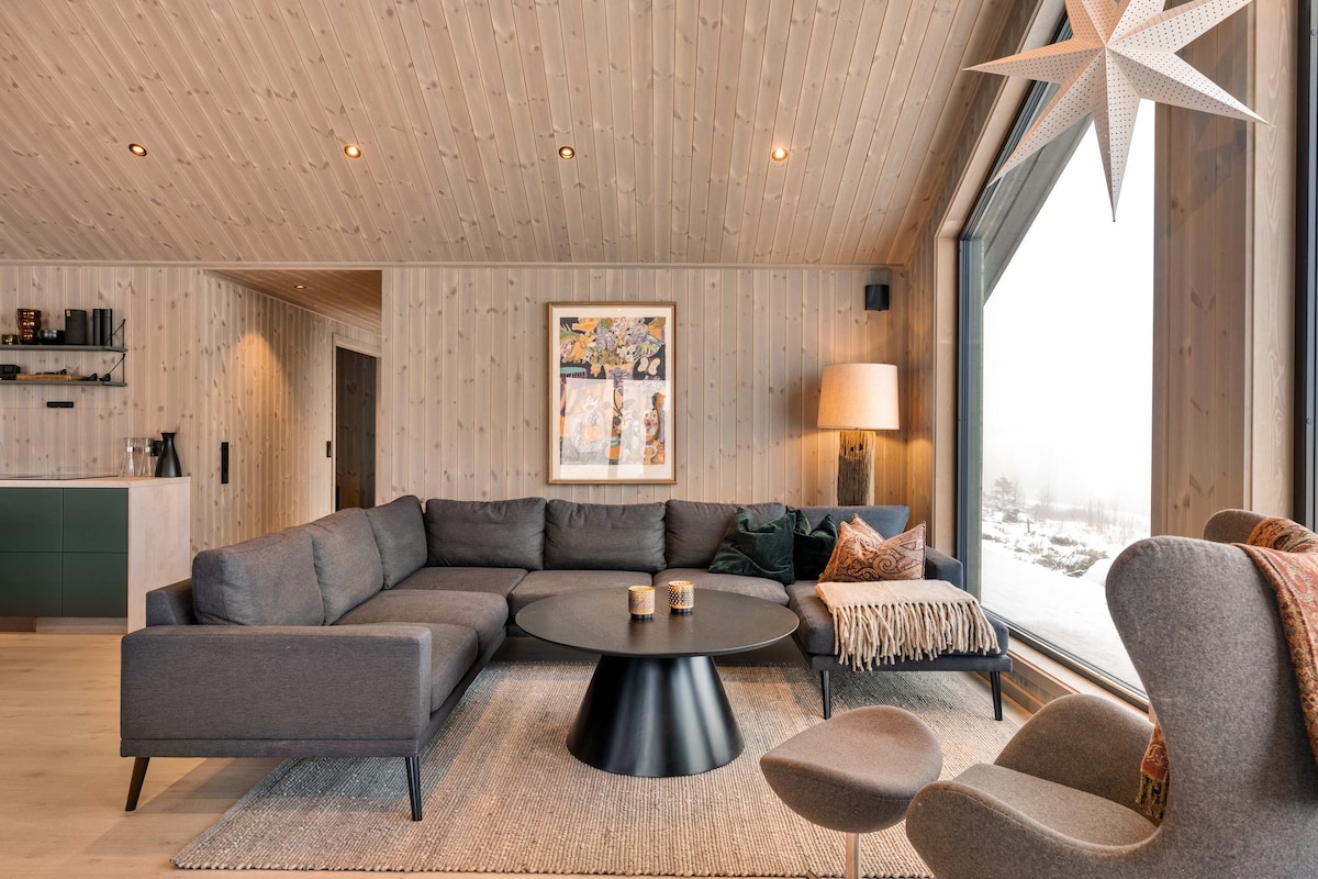 Jaunuzcelts, ekskluzīvs un plašs kalnu namiņš 175 kv.m platībā. Labākā atrašanās vieta Fageråsen ar tiešu savienojumu ar slēpošanas trasi (slēpošanas trasi), distanču trasēm un Radisson Blu Mountain viesnīcu - ar SPA, maizes ceptuvi, restorāniem un slēpju nomu. 5 guļamistabas (10 gultas), 3 vannasistabas un pirts. Liela dzīvojamā istaba ar 6 metru griestu augstumu, panorāmas skatu un jauku lasīšanas stūrīti. Televizors un atpūtas telpa ar skatu uz kalniem. Milzīga, labi aprīkota virtuve ar ēdamzonu 12 personām. Autostāvvieta un slēpošanas telpa. Augstas kvalitātes un ekskluzīvi materiāli.