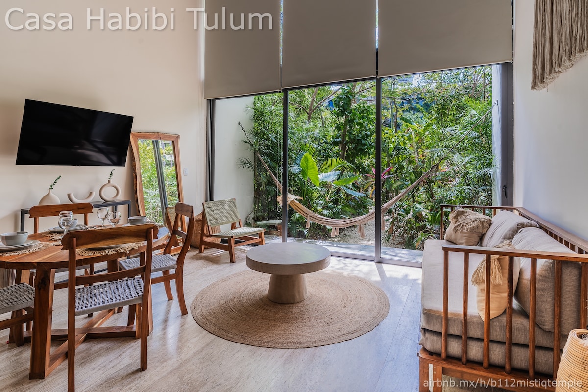 Luksusa dzīvoklis Aldea Zama. 7 minūšu brauciena attālumā ir pludmale, 5 minūšu brauciena attālumā ir Tulum Centro, gājiena attālumā ir restorāni un veikali Aldea Zama. Vietējās un augstākās klases mēbeles rada tīru un māksliniecisku vidi. Privāts baseins un pazemes autostāvvieta. Divi bezmaksas velosipēdi. Jūsu teātris nolaižas no griestiem ar pogas klikšķi. Pilnībā aprīkota virtuve, televizori, spēles. Jums pat nevajadzēs doties prom.