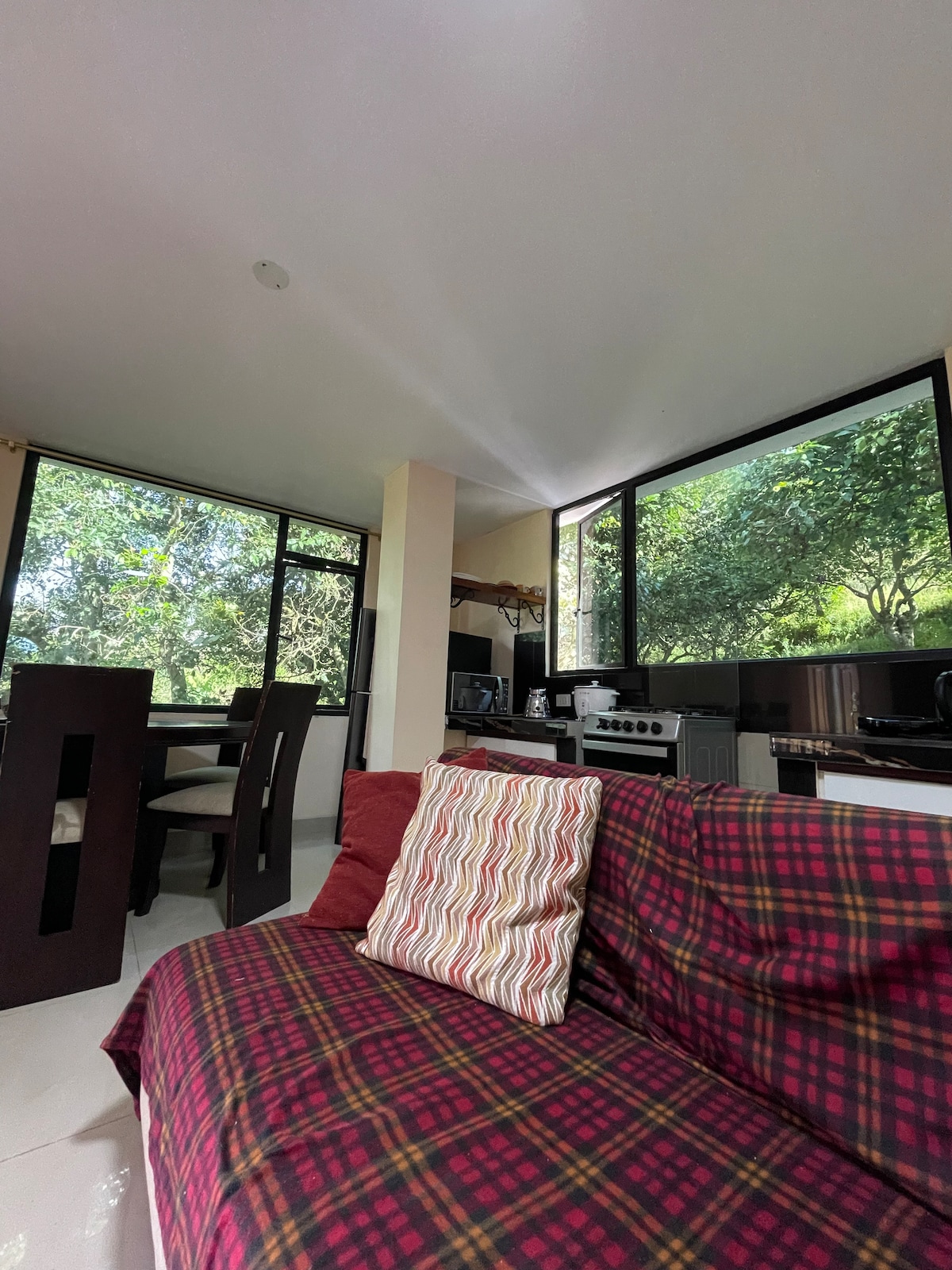 Dabā sakņota un ar nolūku veidota dvēseliska atpūta, kurā atgūti koka darbi, 600 m² privāts dārzs un dziļš klusums aizvedīs jūs atpakaļ pie sevis. Pamostieties ar dabisko apgaismojumu, putnu dziesmām un svaigu zaļumu smaržu. Jūs ieskauj dzīve — un tikai dažu minūšu attālumā no labākā Baños. ✔ 360° konsjeržs: privāts transports, īpaši atlasītas ekskursijas un pielāgoti piedzīvojumi ✔ Viss jūsu grupai rezervētais īpašums ✔ Parūpējieties par ģimeni: tepat netālu, gatavs palīdzēt un ar prieku padarīs jūsu uzturēšanos bez piepūles