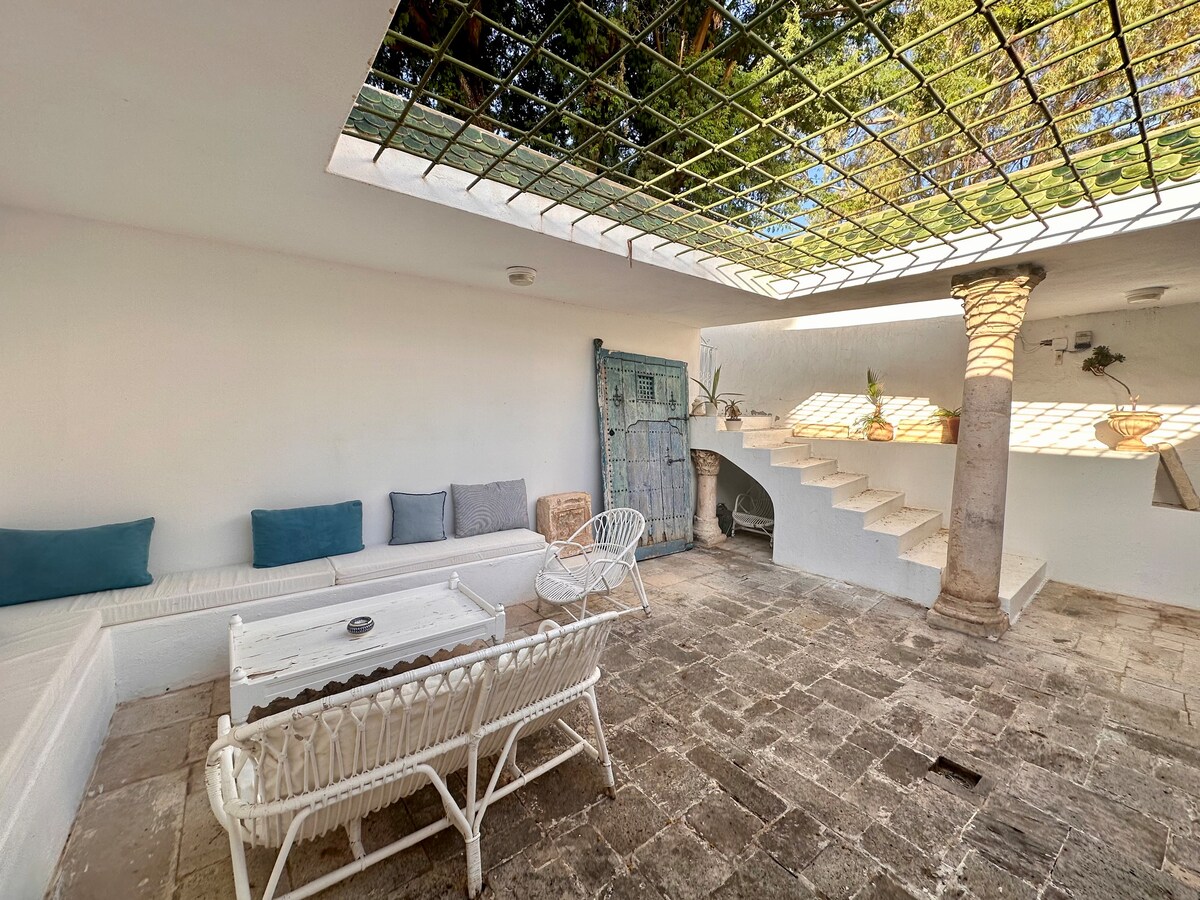 Ancien atelier de peinture d'un grand peintre tunisien, ce studio est situé dans un parc paisible en plein cœur du village bleu et blanc Sidi Bou Said. -salon, chambre à coucher, cuisine salle de bain et patio privé -lit 2 places, 2 banquettes 1 place au salon -cuisine équipée, machine café, bouilloire, toaster -salle de bain douche -patio avec banquettes et table pour dejeuner -wifi - parking privé - piscine commune -parc privé - descendre des escaliers pour accéder au studio