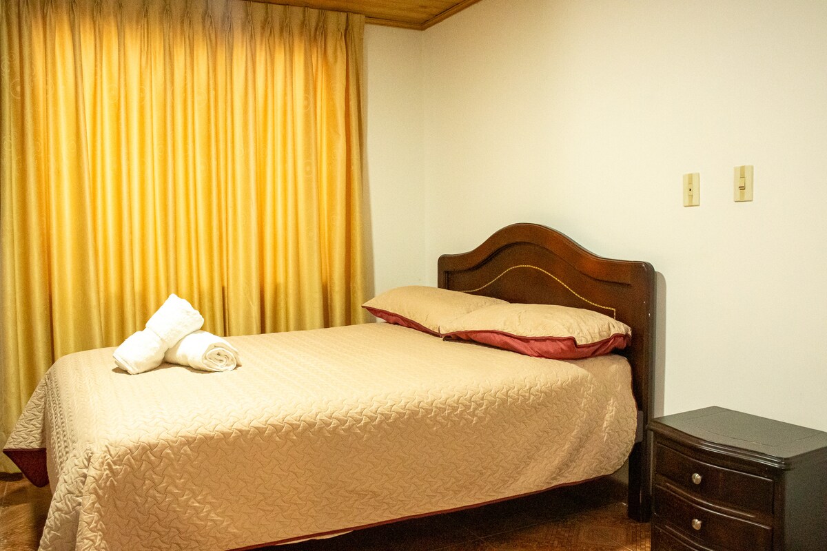 Apartasuite Orion Tunja. Mums ir pilnībā aprīkoti dzīvokļi: katrā dzīvoklī ir 3 guļamistabas, no kurām 2 ir kopīga 1 vannasistaba un 1 ir privāta vannasistaba. Mūsu sniegtais pakalpojums ir par istabu Ja vēlaties, lai dzīvoklis būtu pilnīgi privāts, varat izmantot 1, 2 vai 3 guļamistabas. Ļaujieties šī burvīgā mājokļa elegantajam dekoram.