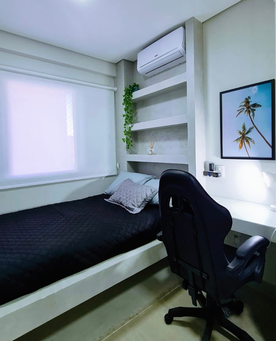 Šis dzīvoklis ir veidots tā, lai sniegtu komfortu, labsajūtu un sirdsmieru! Tajā ir divguļamā gulta (Queen), griestu ventilators un klēpjdators, gaisa mitrinātājs, gultasveļa, dvieļi. Pilnībā aprīkota virtuve, virtuves piederumi, plīts virsma, rīsu plīts, elektriskais grils, ledusskapis, mikroviļņu krāsns, ūdens filtrs, elektriskā cepeškrāsns, tvaika nosūcējs, gludeklis un gludināmā letes virsma, televizors un Wi-Fi. Ar automašīnu, 7 minūšu attālumā no Unitri un Uberlândia Shopping, 10 minūšu attālumā no Pitágoras koledžas, 2 minūšu attālumā no lielveikala un aptiekas.