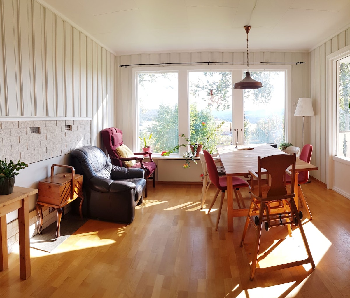 Tikko atjaunots (2017. gads) viesu namiņš mājīgā vietā/ pagalmā. Saule no rīta līdz vakaram, skats uz Rondani un Snøhetta. Liela terase ar atpūtas zonu un gāzes grilu, plaši āra apstākļi. 750 metrus virs jūras līmeņa, nebeidzama ar pārgājienu un slēpošanas trasēm, vieglas nogāzes tieši aiz durvīm. Priecīgu medību un zvejas vietu. Vietējie kalniņi 20min, Oppdal Alpin 60min. Lysløype "ārpus durvīm". 5 min automašīna līdz Folldal centram. Mēbelētu dzīvokli 18 m2 platībā savā ēkā var izīrēt vairāk vietas. NB! Nomas cena tiek koriģēta, ņemot vērā augstās elektroenerģijas cenas 2025. gadā.