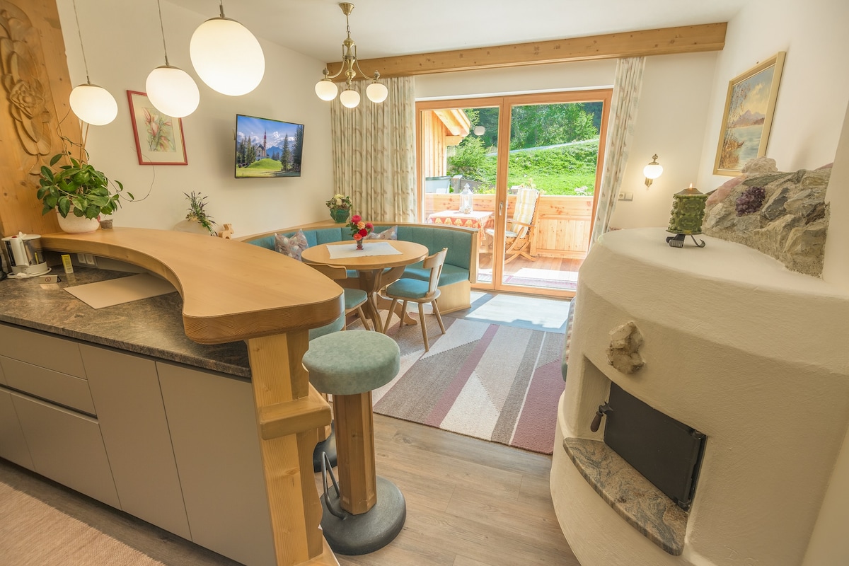 Mājīgs dzīvoklis ar skatu uz kalniem un terasi + dārzs