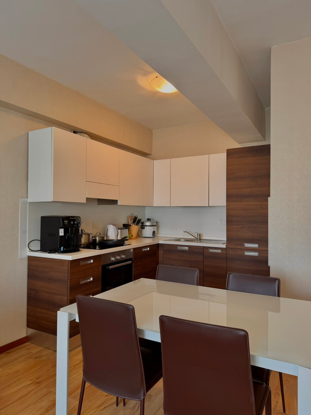 This sunny and warm luxury apartment in a modern high rise building is located in a new residential area across the street from a large park. The quiet one-bedroom apartment is suitable for mid to long term contractors. It has a spacious living/dining area with a beautiful wall to ceiling curved window. The residential town is serviced with restaurants, coffee shops, convenience stores, hair and beauty salons, dry cleaning, fitness club and many others. Please contact owner for more inquiries.