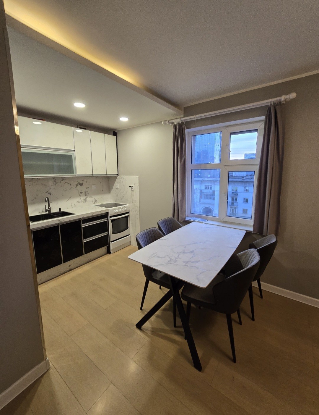 Upon entering the apartment, you'll be greeted by a space that is both modern and inviting. The space has been thoughtfully designed with a minimalist aesthetic, which creates a calm and relaxing atmosphere.