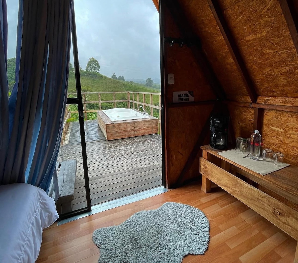 Krāšņs namiņš un Kiklādu stila burbuļvanna ar privileģētu atrašanās vietu pašā kafijas reģiona sirdī. Hidroterapijas un nakts gaismas displejs, ekoloģiskā taka, putnu vērošana, tauriņi, savvaļas dzīvnieki, panorāmas skats uz bambusa jūru, saullēkti un daudzkrāsaini saulrieti. - 22 minūtes līdz starptautiskajai lidostai - 20 minūtes līdz Expofuturo - 22 minūtes līdz Ukumari zooloģiskajam dārzam - 25 minūtes līdz Cerritos del Mar Mall - 44-57 minūtes līdz Filandia/Salento-Valle del Cocora - 55 minūtes līdz Panakai - 1 stunda līdz Parque del kafejnīcai