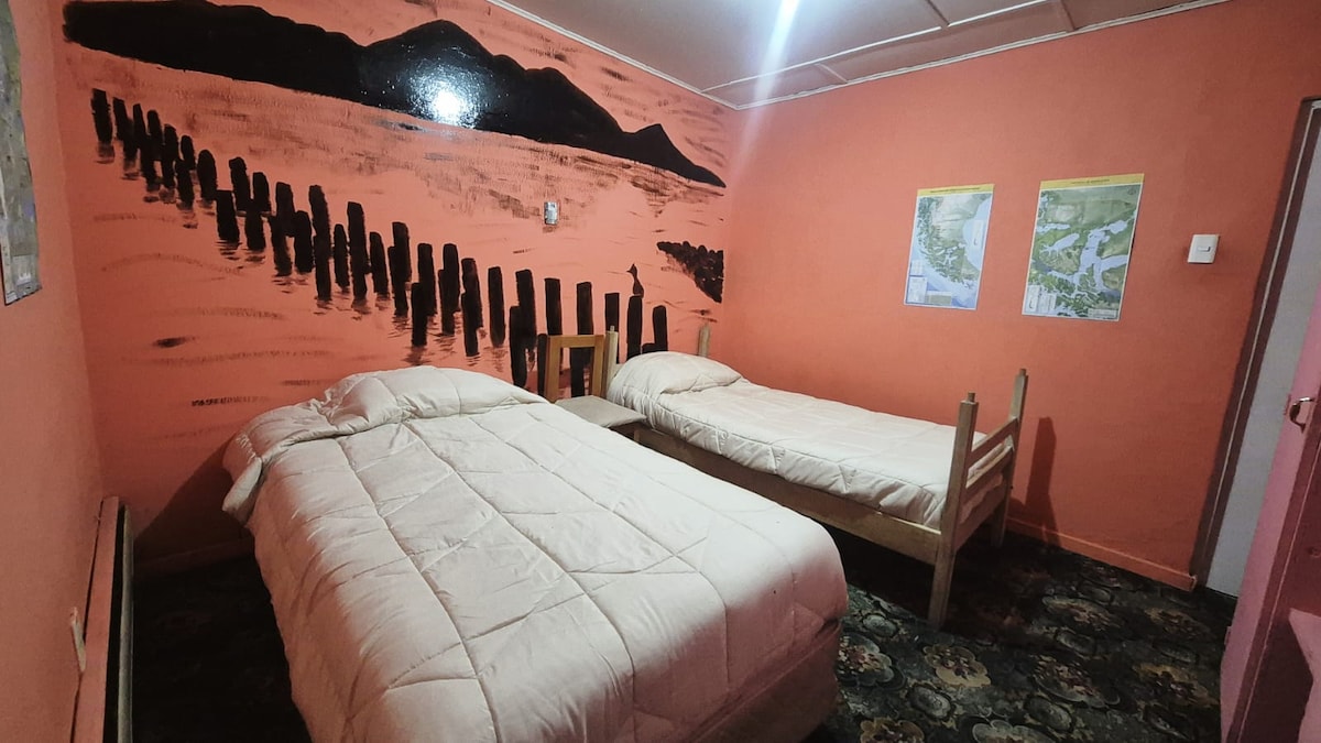 In Puerto Natales the gate to Torres del Paine National Park you can find our Cozy and sharming decorated Hostel. The 4 people shared dorm has confi warm beds and shared bathroom. Includes breakfast, a full equipment kitchen, cozy and nice shared areas, wifi and walking reacheable atracctions and amenities.
