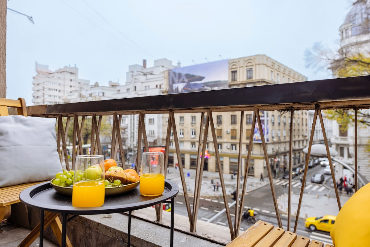 Šis skaistais dzīvoklis atrodas pašā Bukarestes sirdī, pie robežas starp spilgto pilsētu un vecpilsētu, tieši blakus Piata Universitatii. Moderna un šiks ar mūsdienīgu atmosfēru, tā jūtas gan izsmalcināti un ērti tajā pašā laikā. Atrašanās vieta ir ideāla - Piata Universitatii un vecpilsēta atrodas mazāk nekā divu minūšu attālumā. Vieta ir viegli pieejama ar sabiedrisko transportu (autobusu un metro), tā atrodas vienas minūtes attālumā no metro stacijas "Universitate".