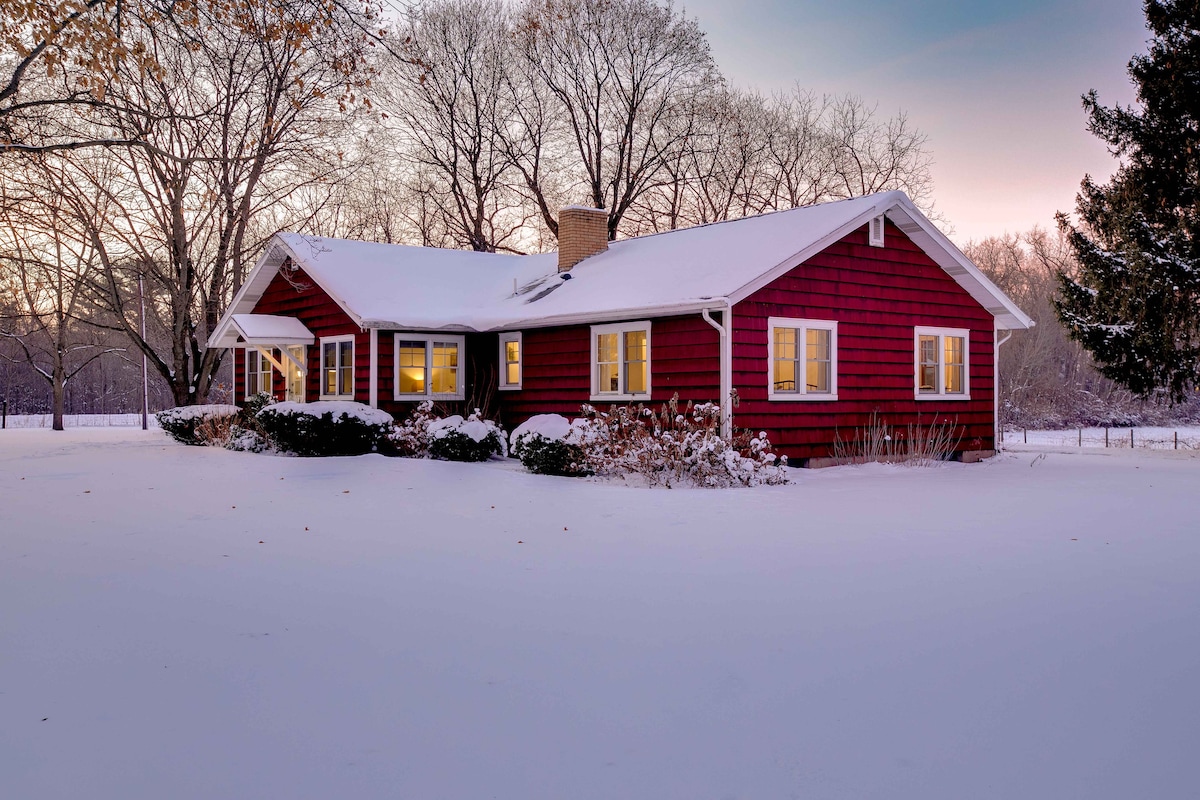 🌿 Dodieties uz šo stilīgo 1700 kvadrātpēdu 3BR/1,5BA mājokli - tikai 1 jūdzes attālumā no Notre Dame! 🏈 Guļ 8 un sēž uz 7 mierīgiem akriem ar skatu uz saullēktu un saulrietu 🌅 Vērojiet briežus laukos un jūtieties jūdžu attālumā no tā - atrodoties dažu minūšu attālumā no Sautbendas jautrības 🎉 Mājīgs, kluss un ideāli piemērots darbam vai izklaidei, Kintz Farm ir kas vairāk nekā mājoklis - tas ir galamērķis! 🐾