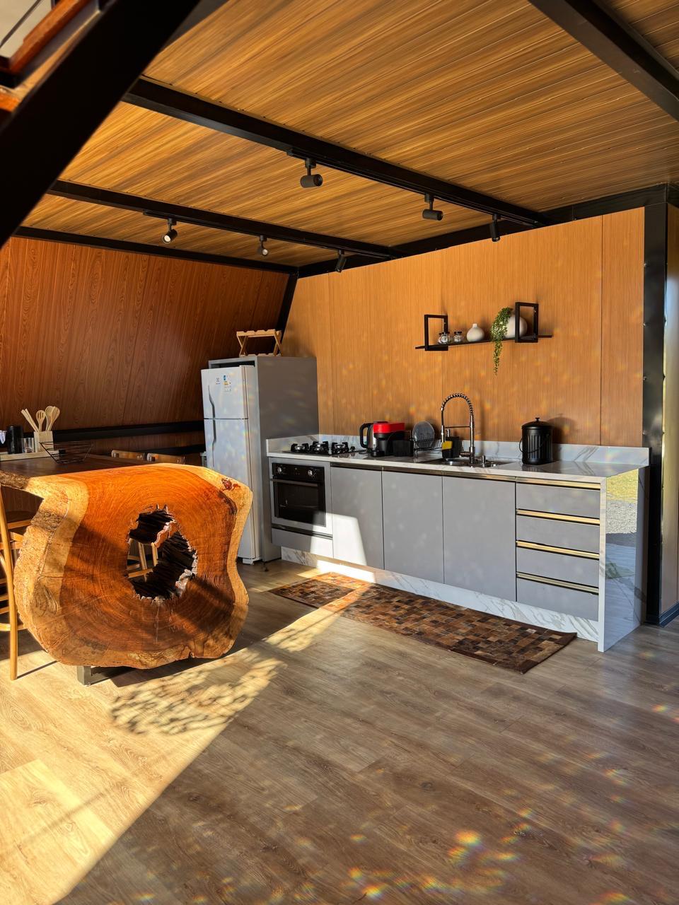 Dodieties atpūtā uz koka loftu Urubici kalnos, kur jūs ieskaus daba, klusums un elpu aizraujošs skats. Šī mājokļa telpas ir ideāli piemērotas pāriem, un tajās ir komforts, privātums un mājīga atmosfēra. Īpaši izceļas vanna ar skatu uz mežu, kas ir ideāli piemērota atpūtai saulrietā vai zem zvaigžņotām kalnu debesīm. Loftam ir atvērta plānojuma telpas, izsmalcināts lauciniecisks interjers un lieli logi, kas telpās ielaiž dabu. Balkons aicina atpūsties.
