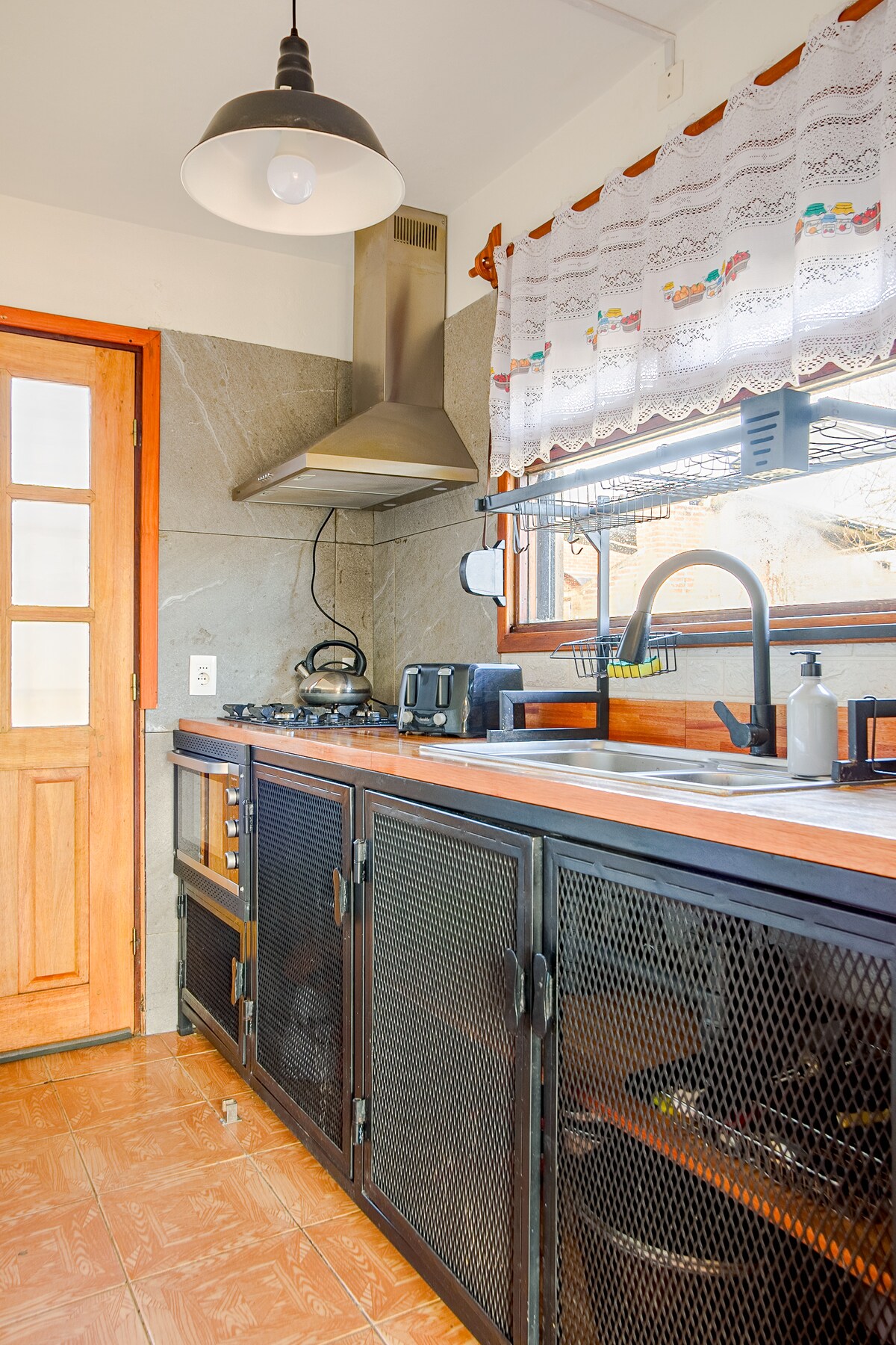 Moderna un skaista māja. Tajā pašā īpašumā ir 2 mājas. Tajā ir 1 guļamistaba ar King izmēra gultu, liela vannasistaba, integrēta virtuve ar kategorijas ierīcēm un dzīvojamā istaba ar viedo 50collu TV gultu Apsildāms baseins (no decembra līdz jūrai), kas ir kopīgs abu māju viesiem Perimetra žogs Savrupa segta Parrillero Elektriskie vārti, transportlīdzeklis ir atstāts īpašumā Ideāli piemērots atpūtai, klusai vietai 6 kvartālu attālumā no krasta