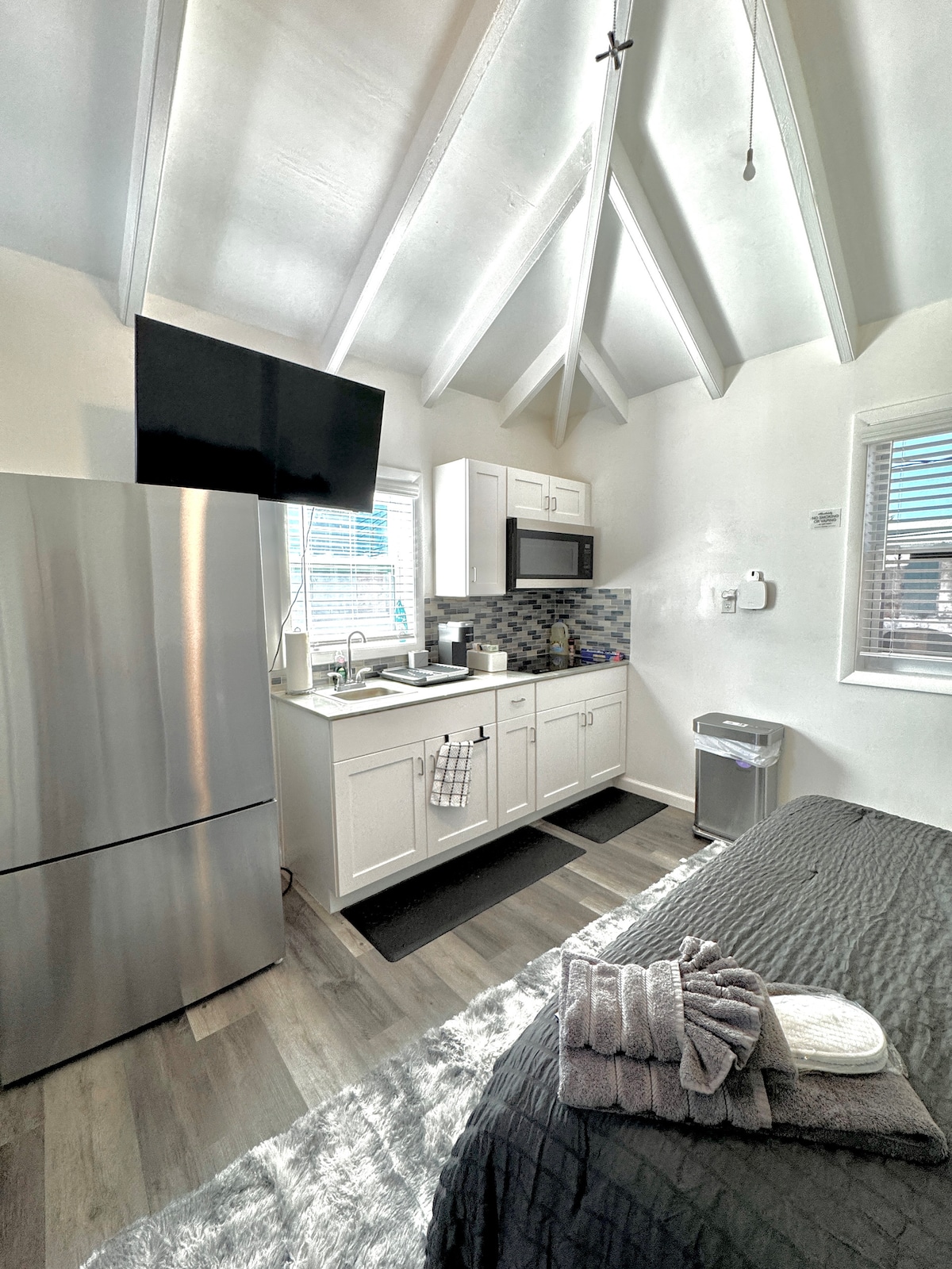 Skaista 1 guļamistabas vienība ar Queen izmēra Simmons spilvenu augšējo matraci, Serta dīvāngultu viesistabā. ieejas lietus duša, velvēti griesti, jaunas nerūsējošā tērauda ierīces. 2. stāva vienība, tieši pilsētā. Maiņstrāva guļamistabā, bet par lietošanu tiek piemērota piemaksa. Šajā vienībā ir lielisks krusta vējš, un mums ir bijuši tikai daži viesi, kuri to ir izmantojuši. Lai gan mājdzīvnieki dzīvo īpašumā, viņi nedzīvo šajā vienībā. Mums ir kaķi, suņi un vistas. JAUNS PELDBASEINS!