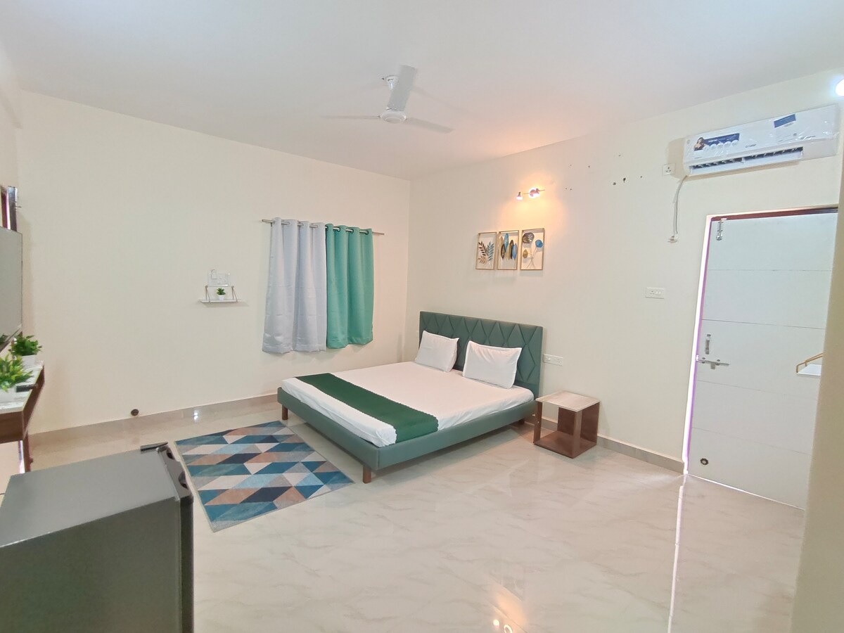 Mūsu plašais Airbnb mājoklis ar 2 guļamistabām un 2 vannasistabām atrodas Goa tropu svētnīcas vidū. Atpūtieties mājīgajā dzīvojamajā zonā, pagatavojiet gardas maltītes pilnībā aprīkotajā virtuvē. Mūsu maiņstrāvas istabas sola mierīgu miegu ar mīkstu gultasveļu, ērtām guļamistabām ar gaisa kondicionētāju. Uzkāpiet uz sava privātā balkona, no kura paveras ainavisks skats uz zaļumiem. Pateicoties pludmalei 5 minūšu gājiena attālumā, no vakariņām pludmalē līdz ideāliem saulrietiem, jūs gaida ideālā Goan atpūta. Rezervējiet tūlīt par Steal Deal cenu!