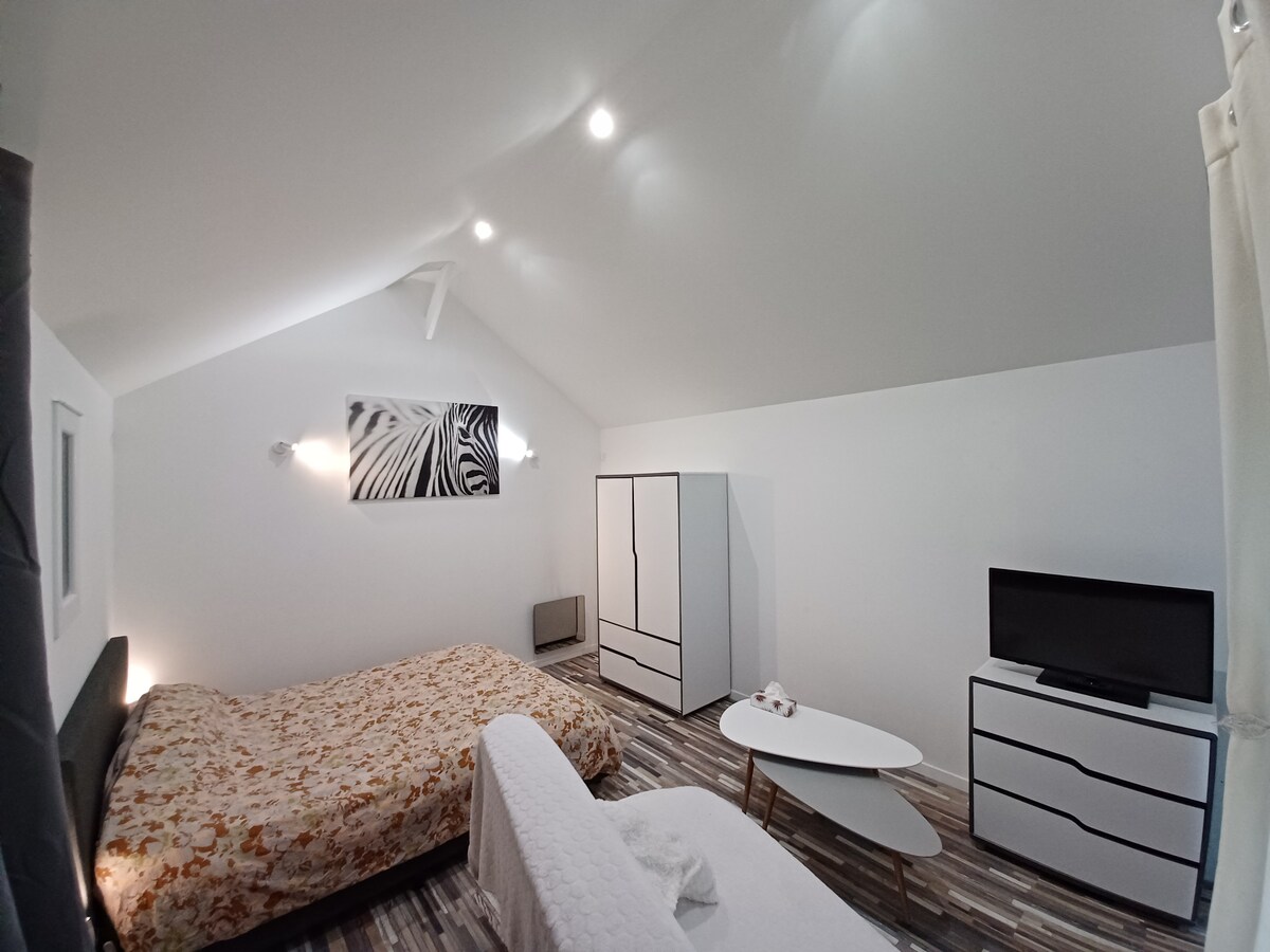 Skaista ciematā Luāras krastos 3 km attālumā no Chambord mēs piedāvājam privātu istabu ar vannasistabu un tualeti klusā vecā mājā. Iespēja guļamistabā pievienot matraci (nav iekļauts) . Jūsu rīcībā ir ledusskapis, mikroviļņu krāsns, tējkanna ar kafiju vai tēju, bet brokastis nav nodrošinātas. Jūsu velosipēdi būs droši slēdzamā pagalmā Ir Wi-Fi, bet sienas ir tik biezas, ka tās nedaudz bloķē viļņus.