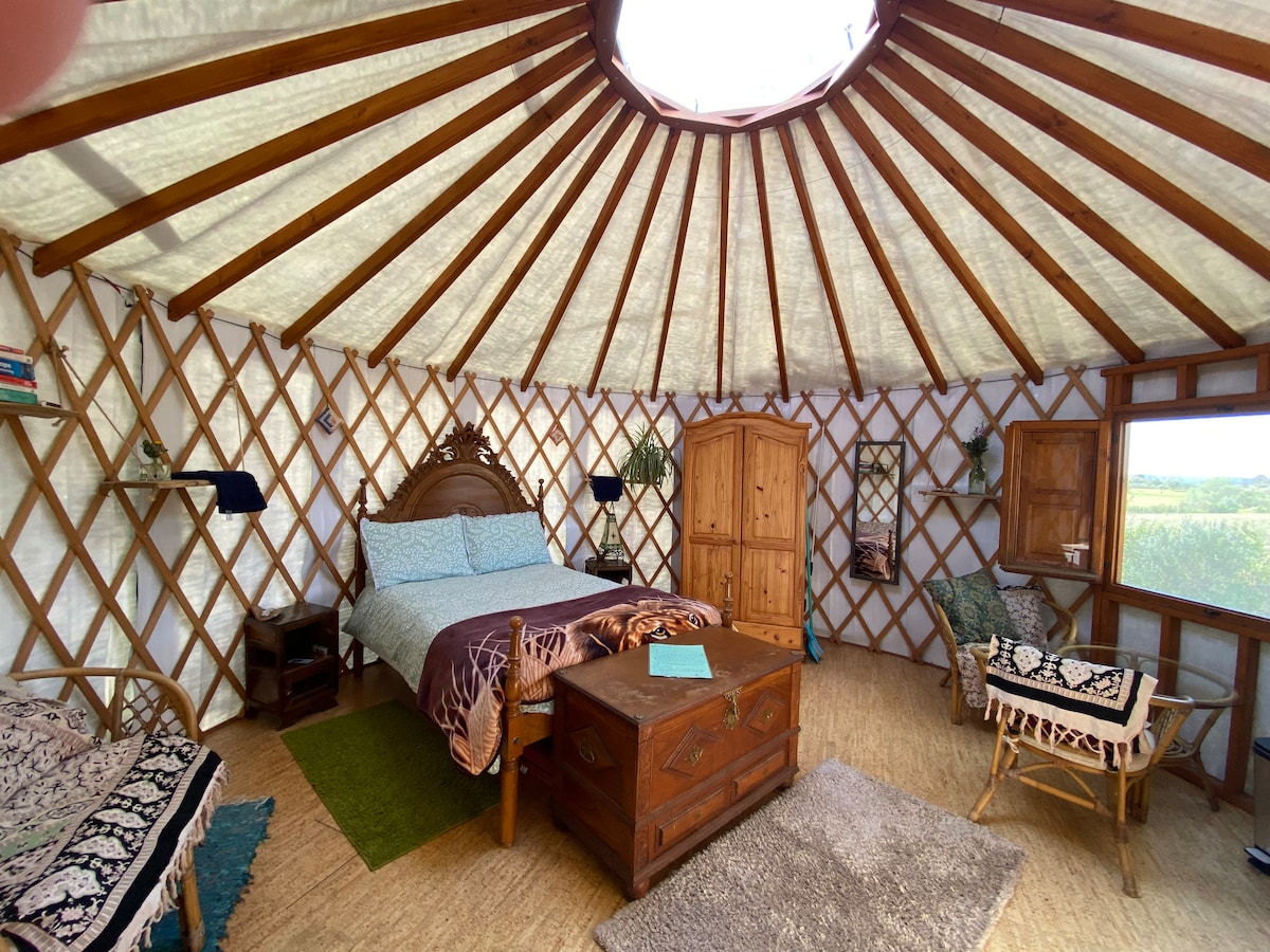 Jurta ar skaistiem skatiem lauku apvidū