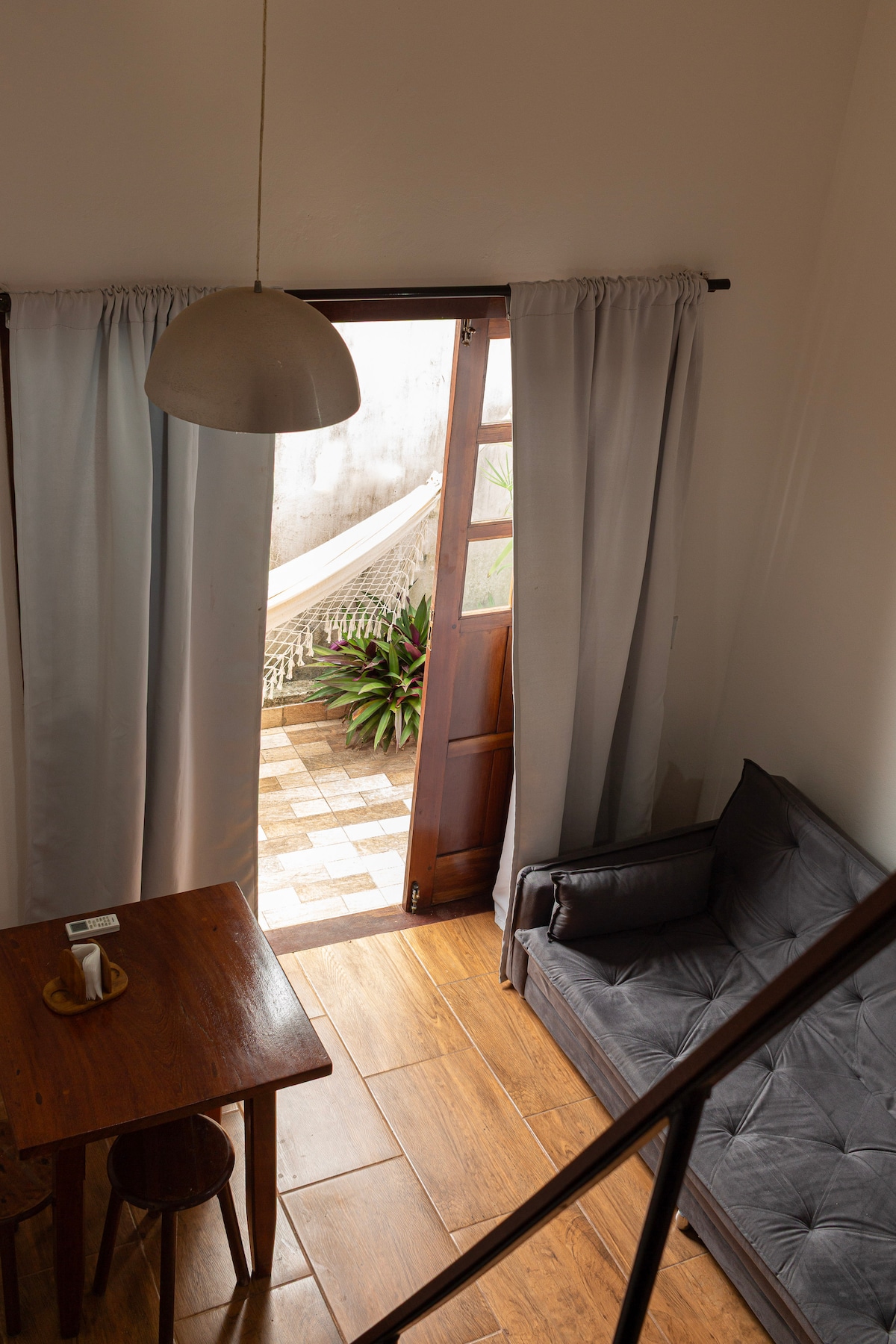 Meža namiņš netālu no Morro de Sanpaulu Dodieties uz šo unikālo un mierīgo slēptuvi Gamboa tropu mežā. Šis 80 m² lielais lofts, kas veidots ar amatnieku darbu no koka un stikla, ļauj pilnībā ienirt apkārtējā dabā. Izbaudiet plašu terasi, kur var vērot putnus, mazus pērtiķus un citas sugas, tikai 100 metru attālumā no pūderainās balto smilšu pludmales Gamboa. Brokastis un uzkopšanas pakalpojumus var noorganizēt, un par to tiks iekasēta atsevišķa maksa.