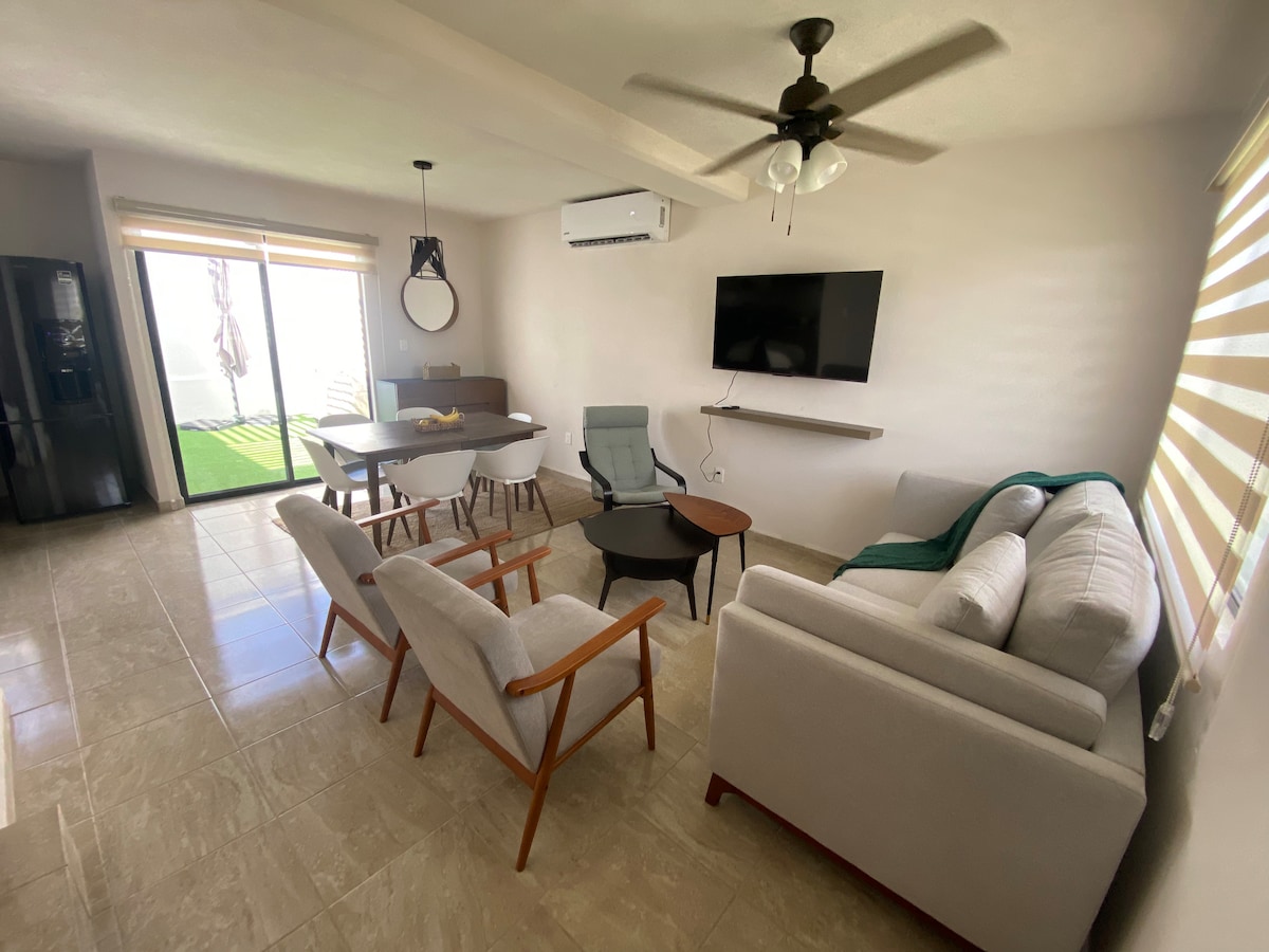 Mājīgs DZĪVOKLIS KLASTERĪ, PIRMAJĀ STĀVĀ, AR DIENNAKTS APSARDZI, - Gaisa kondicionētājs - Viesistaba ar dīvāngultu un TV - 80 Mb Wi-Fi -Megacable -Netflix Koplietošanas telpās ir: Autostāvvietas zaļās zonas Baseins no otrdienas līdz svētdienai no plkst. 7:00 līdz 22:00 (no plkst. 22.00 bez mūzikas vai trokšņa). Pirmdienās baseins ir atspējots iknedēļas apkopei *** IEKĻAUTA AUTOSTĀVVIETA ***