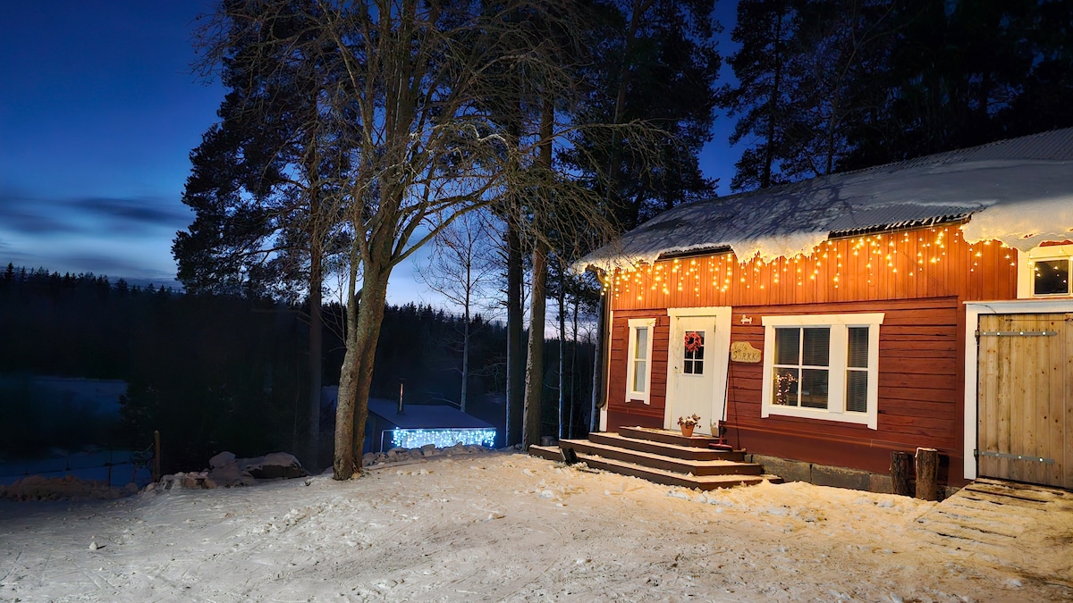 The cottage is located on a large 3.5-hectare lot in a secluded area surrounded by small ponds. You can enjoy the gentle heat of the wood sauna and then relax in the warm water of the hot tub. At sunset, you can see moose, deer, and other forest animals grazing in the nearby field from the terrace. You can also head to the nearby forests to pick mushrooms and berries and prepare dinner from them. Small pets are allowed!