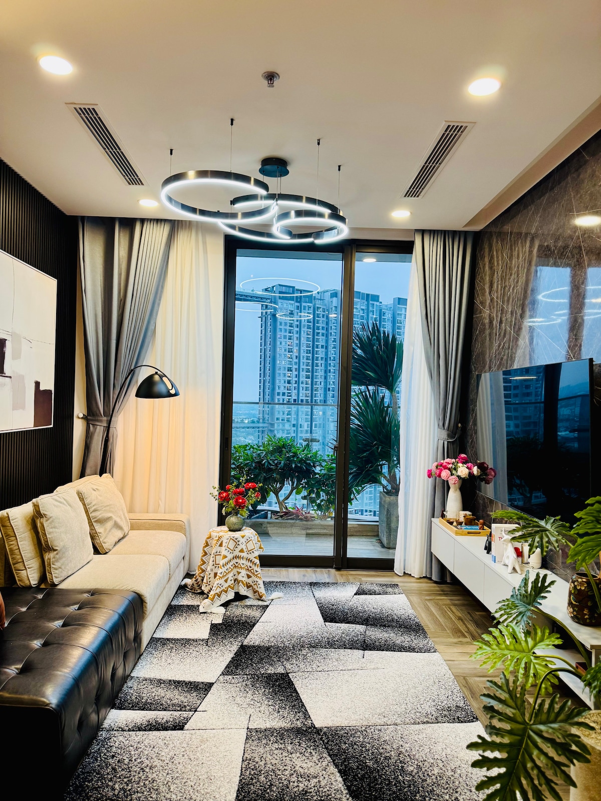 Augstā stāvā esošs dārza dzīvoklis 24. stāvā, kas paredzēts viesiem, kuri novērtē privātumu un klusu greznību. Ar retu privātu dārzu ar brīvu skatu uz Ekoparka salu villām. Mierīgs, elegants un izsmalcināts – ideāli piemērots pāriem, radošiem cilvēkiem un zinošiem ceļotājiem, kuri meklē dzīvošanu boutique stilā, nevis masveida tūrismu. ~~~~~ Căn hộ tầng 24 có sân vườn riêng hiếm có, skats uz biệt thự đảo Ecopark. Không gian yên tĩnh, tinh t, dành cho khách có gu và trân trọng trải nghiệm sống cao cấp.