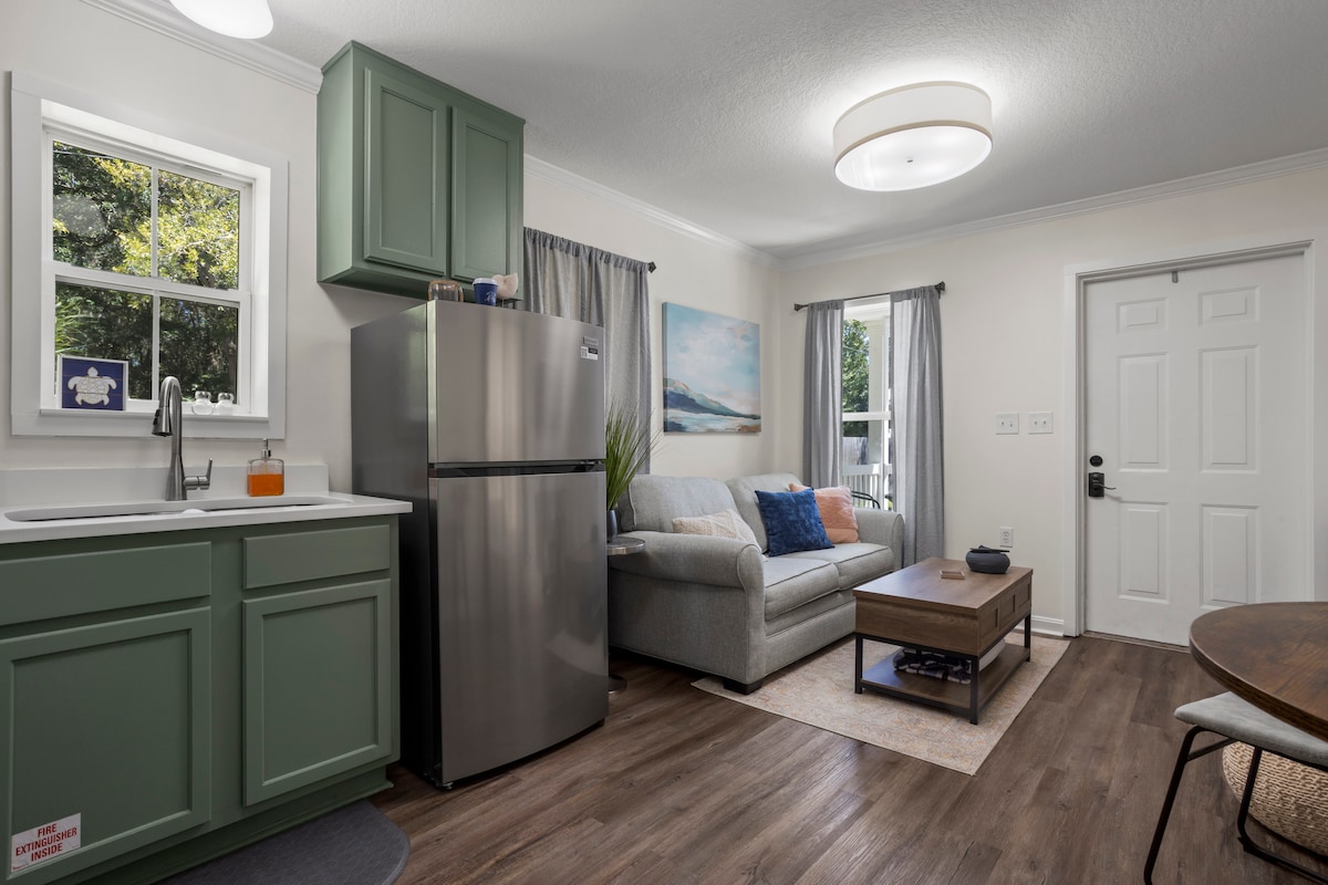 Jūs vienmēr atcerēsieties laiku šajā mājokļa pērlēs. Mūsu mājīgā kotedža ir pastaigas (vai golfa ratiņi, kas ir pieejami īrei tuvumā) attālumā no iepirkšanās, ēdināšanas, izklaides un līča. Atrodoties tālu no ielas, bet tieši pie valdības, mēs esam ideāla vieta nedēļas nogales atpūtai vai relaksējošam atvaļinājumam. Izbaudiet ērtu piekļuvi visam, ko piedāvā šī ideāli izvietotā mājokļa bāze. Viena divguļamā gulta (Queen). Viens izvelkams dīvāngulta.