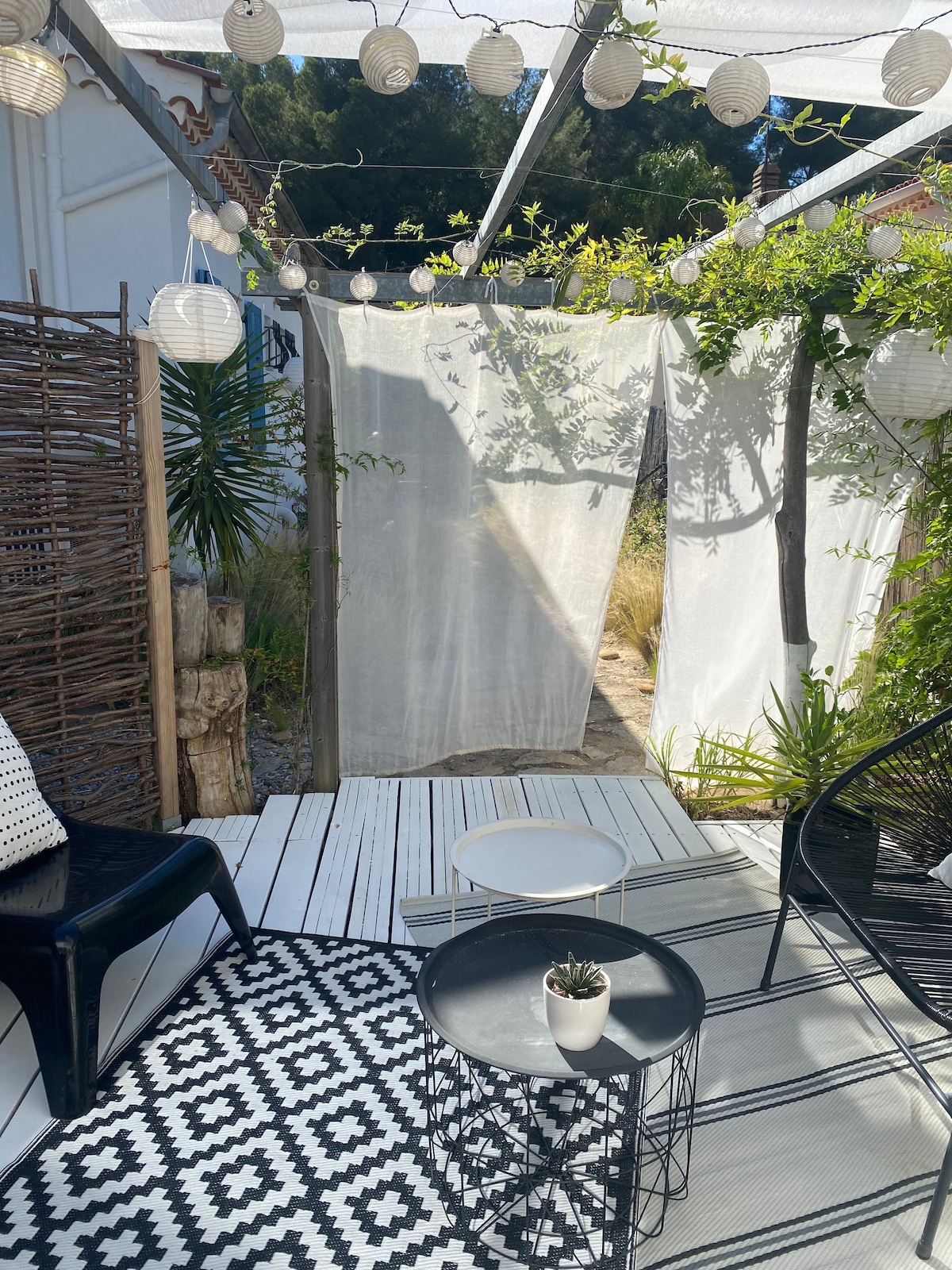 Nāciet un atpūtieties šajā 25 kv.m dzīvoklī ar gaisa kondicionētāju blakus mūsu villai, kas atrodas 800 metru attālumā no pilsētas centra, 1,2 km attālumā no pludmalēm, netālu no meža un 3 km attālumā no Sanary un tās nakts tirgus vasarā. Klusa apkaime, privāta autostāvvieta . Pilnībā aprīkota virtuve, vitro plīts, mikroviļņu krāsns, kafijas automāta ledusskapja cepeškrāsns, tējkanna, tosteris Skaista terase ar gāzes grila sauļošanās krēsliem Nodrošināti palagi un dvieļi Kad ieradīsieties, jums tiks nosūtīts vārtu pīkstiens