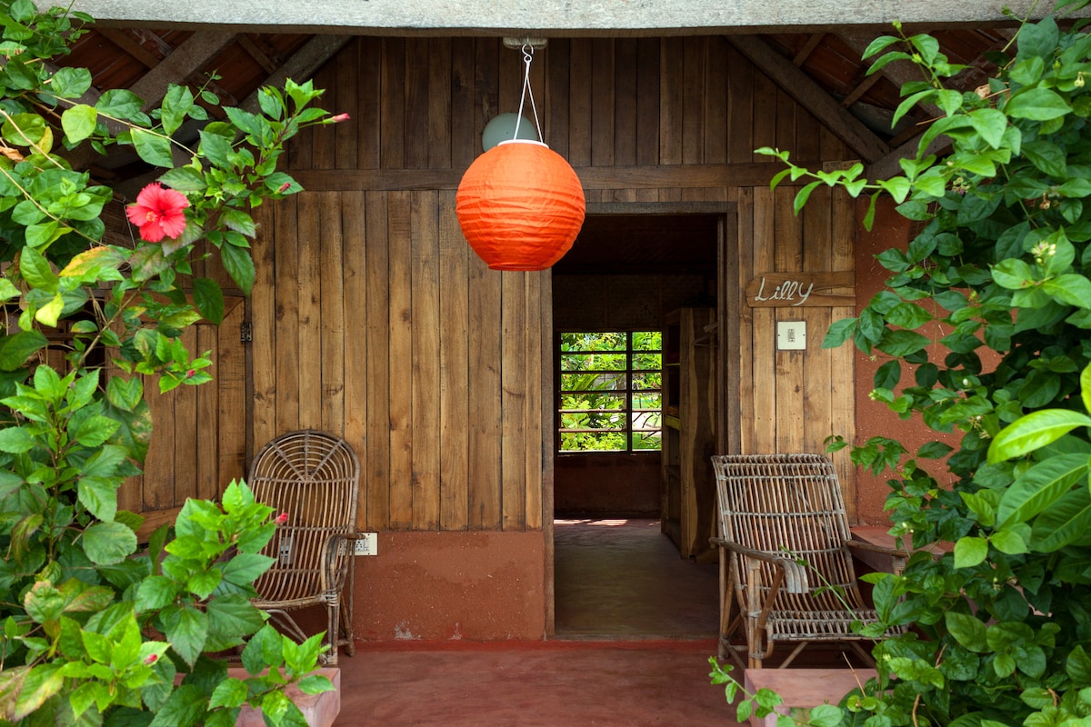 Atpūtieties šajā unikālajā un mierīgajā atpūtas vietā. Šis eko kūrorts katru dienu piedāvā ajūrvēdas procedūras, masāžas, Dienvidindijas ēdienu un jogu. No šī skaistā un luksusa bungalo paveras skats uz ezeru. Gaisa kondicionētājs, vanna,duša, karsts ūdens un liela terase. Mūsu mājoklis atrodas starp ezeru un pludmali. 9 bungalo atrodas skaistā tropu dārzā ar daudziem putniem. Šis bungalo ir paredzēts ne vairāk kā diviem cilvēkiem. Komplektā ietilpst gultasveļa.