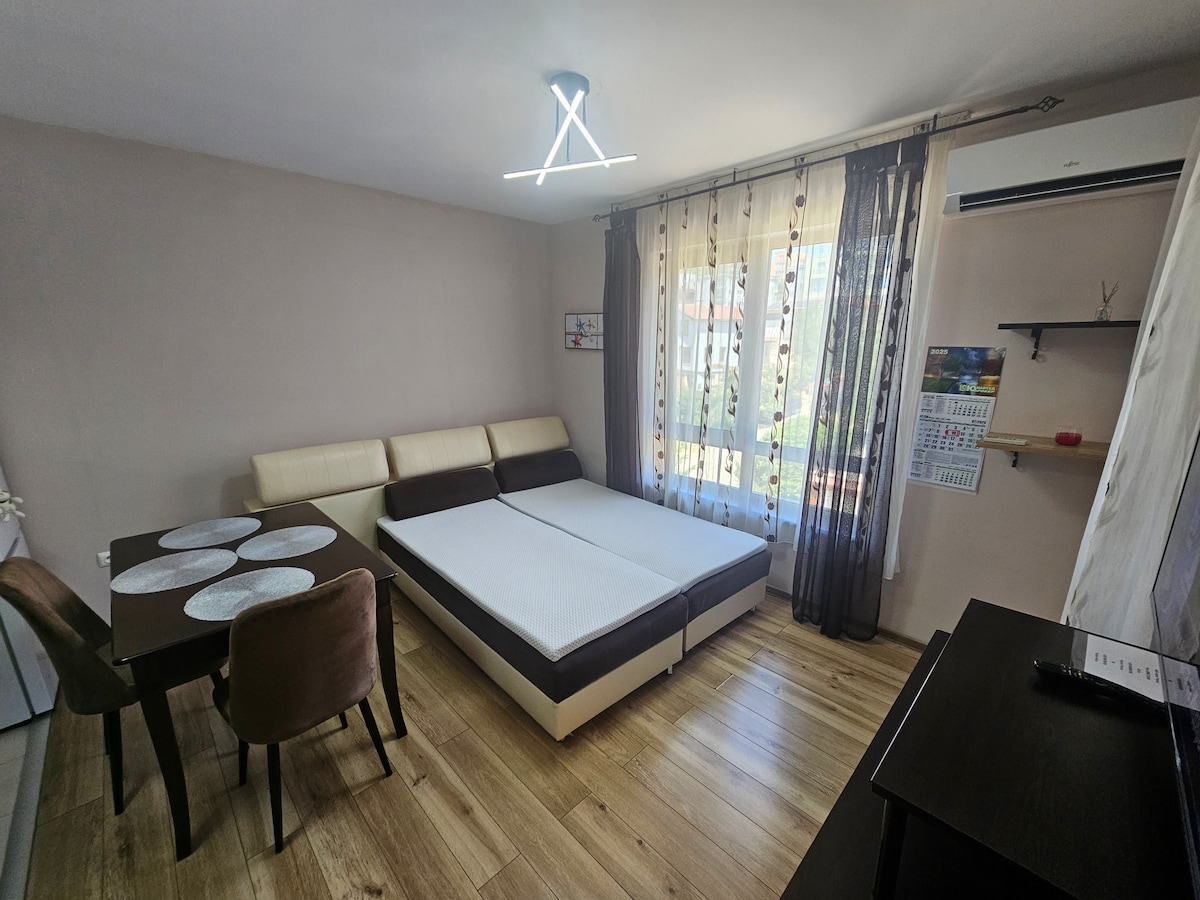 Laipni lūdzam jūsu ideālajā ceļojumā Varnā! *Bez uzkopšanas maksas!* -1,7 km attālumā no Varnas centra, 9 km attālumā no Varnas lidostas. - Blakus Grand Mall Varna un Centrālajai autoostai. - Pilnībā aprīkota virtuve. - Maksas publiskā autostāvvieta priekšā (zaļā zona); maksas autostāvvieta 8 minūšu attālumā. - Gaisa kondicionētājs, bezmaksas Wi-Fi un televizors katrā istabā. - Izbaudiet skatu uz Varnas pilsētu vai Melno jūru. - Tuvumā esošie pārtikas veikali, piemēram, Billa. - Mazuļu gultiņa pieejama pēc pieprasījuma. Priecāsimies jūs uzņemt!